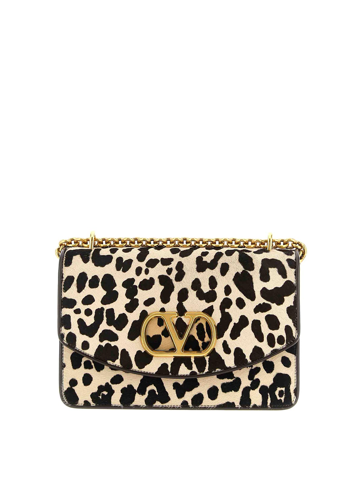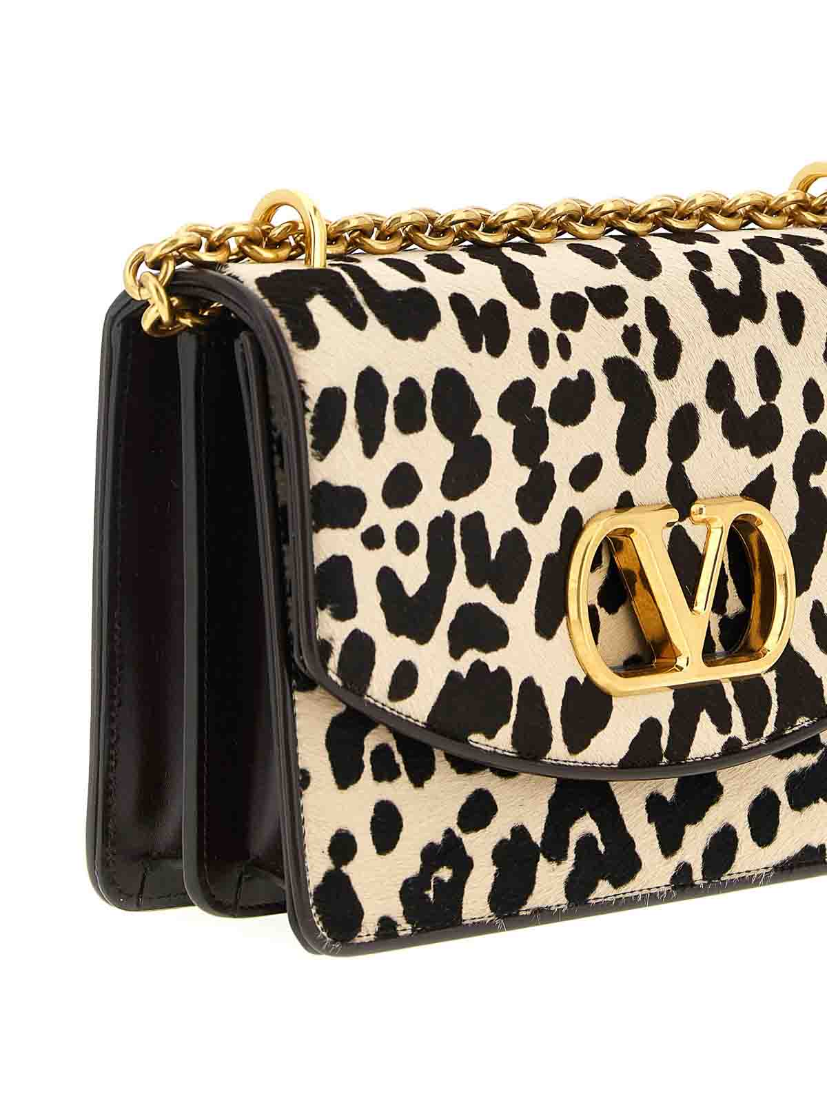 vain' shoulder bag in calf leather, pony effect animal print, magnetic flap closure with 'vlogo signature' front.mes tal cut-out and sliding chain.