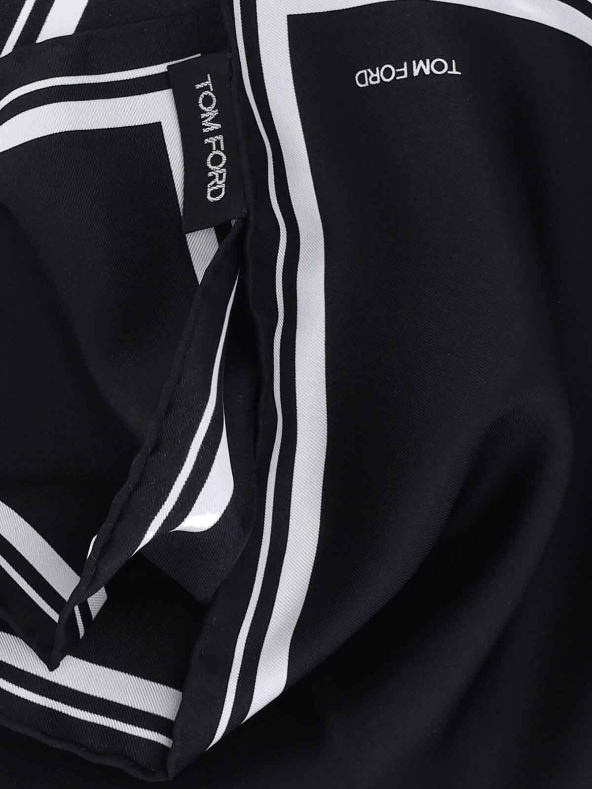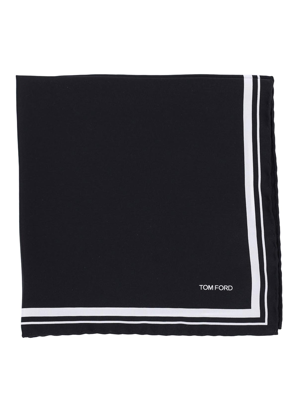 Tom Ford silk twill pocket square, black, contrasting details, front logo print.