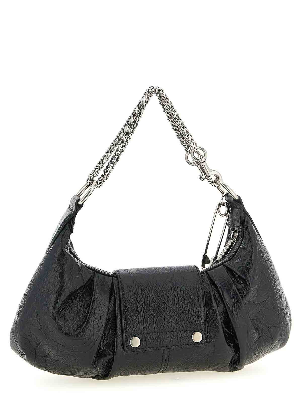 Arena 'pamela' small lambskin shoulder bag with antique silver finish, top zip closure and magnetic flap with front.mes tal logo, handle with safety pin closure, cotton canvas lining, removable chain handle, adjustable and removable leather shoulder strap.