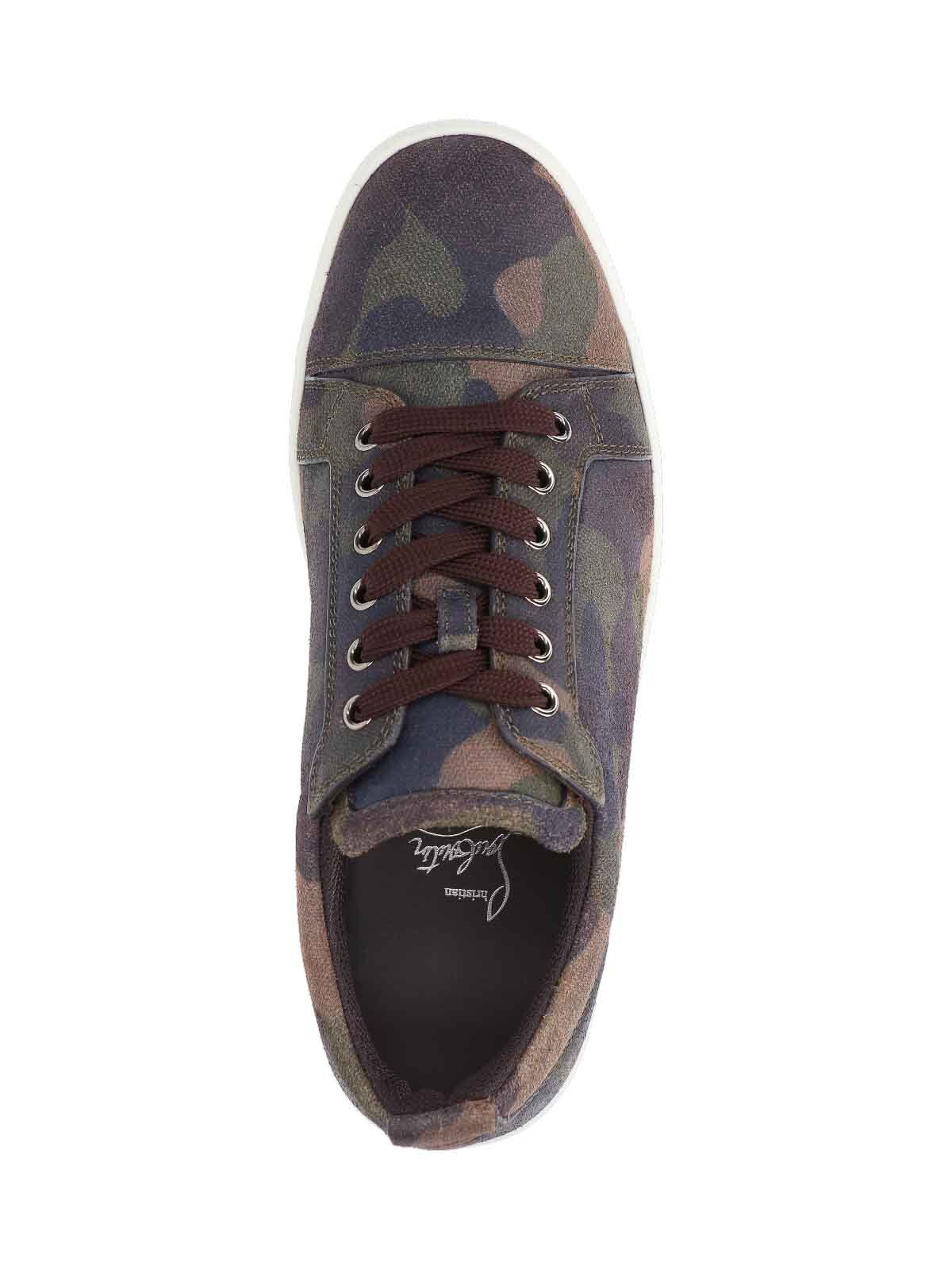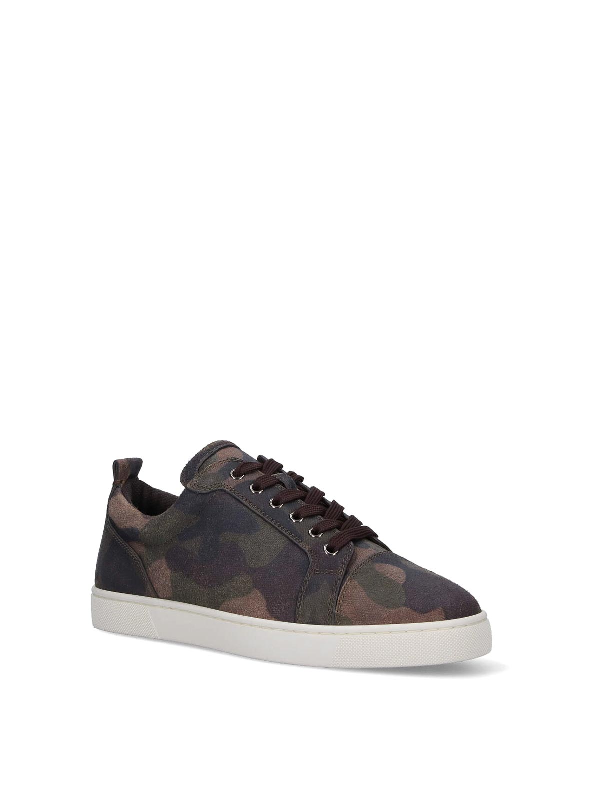Christian Louboutin Louis Junior sneakers, in brown calfskin, camouflage pattern, round toe, lace closure, rear tongue detail, rubber sole.
