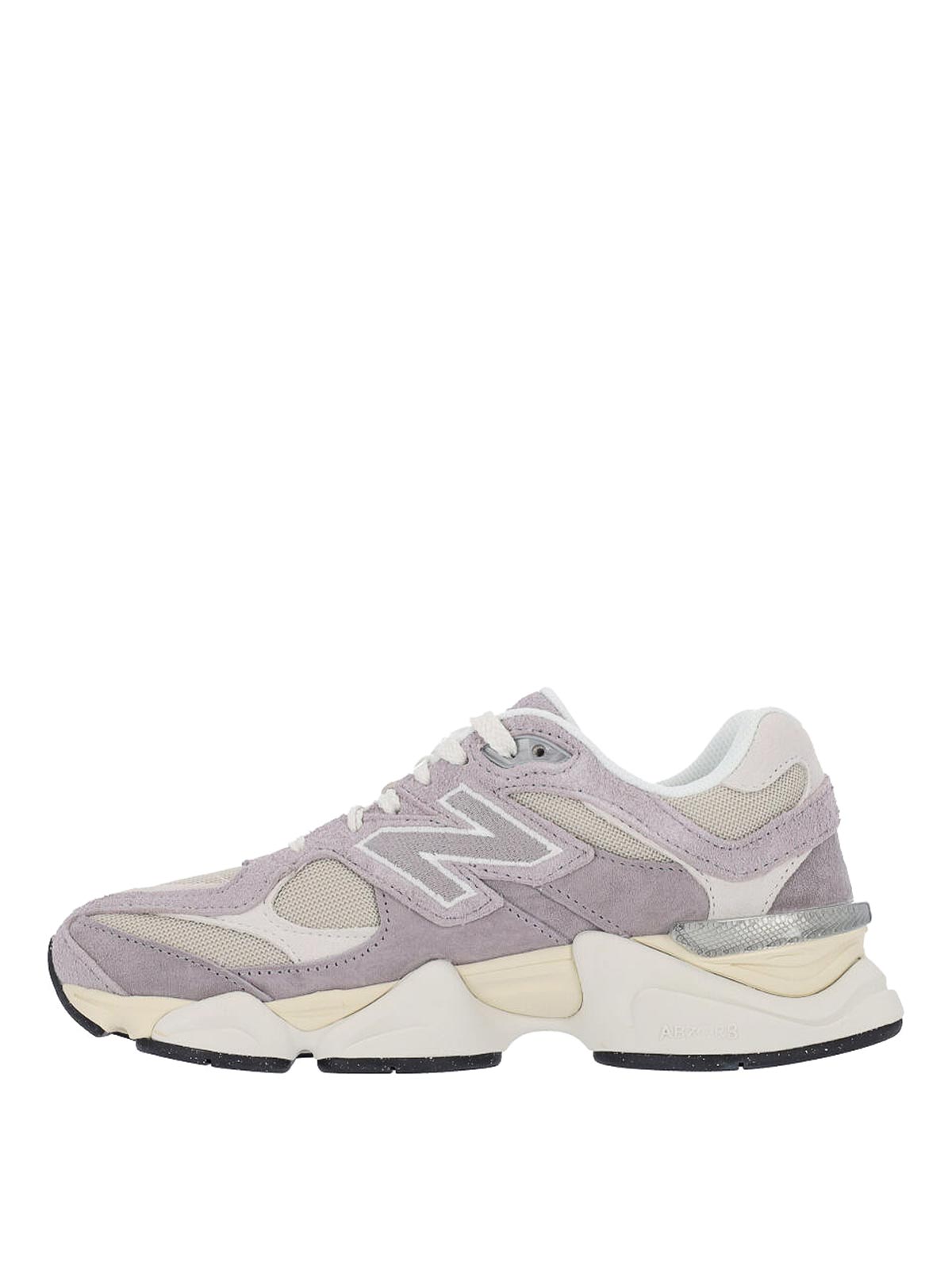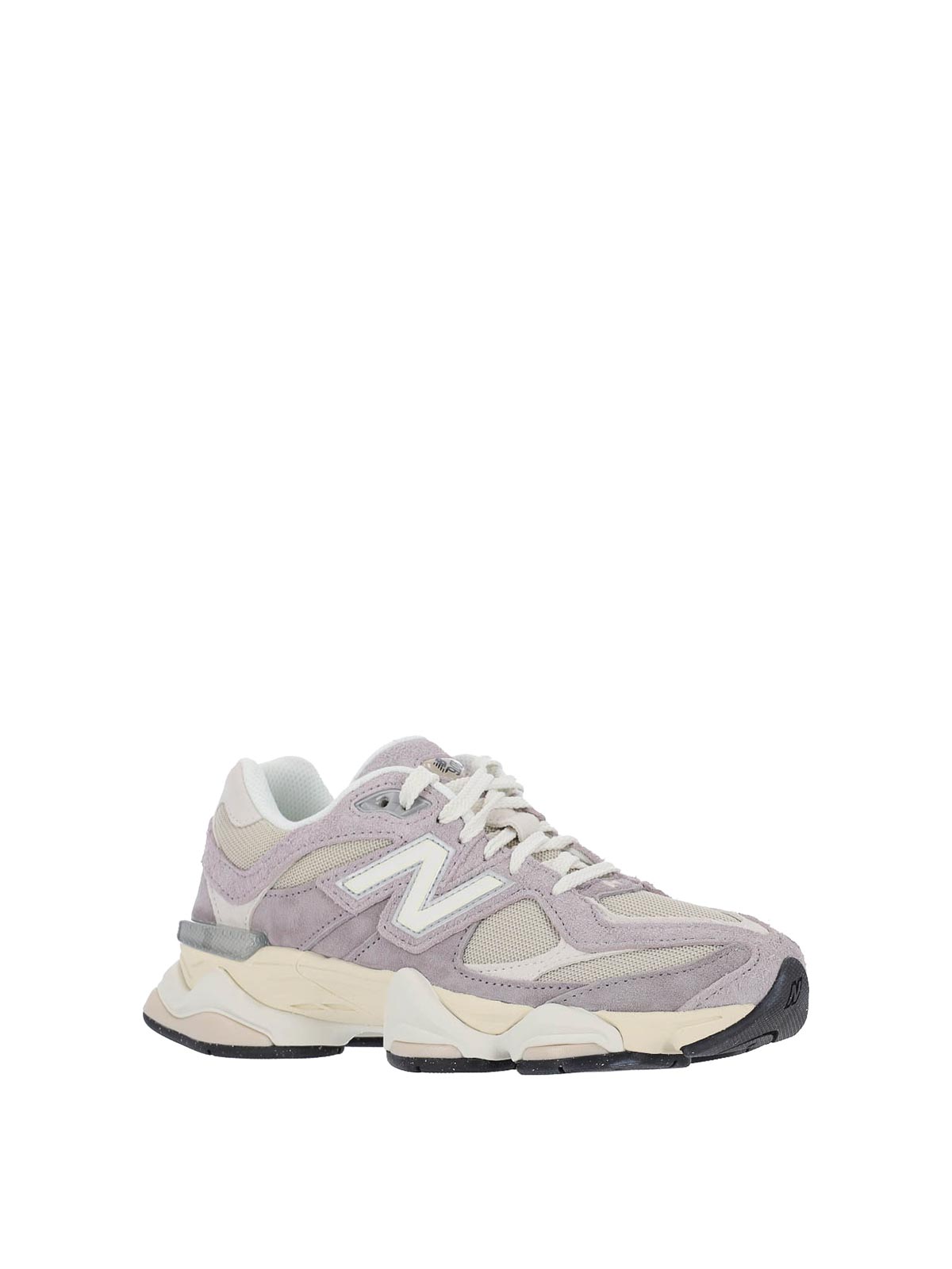 New Balance 9060 sneakers, in pink suede, mesh finishes, round toe, lace-up closure, logo patch on tongue, side logo patch, contrasting logo embroidery on back tab, textured rubber sole.