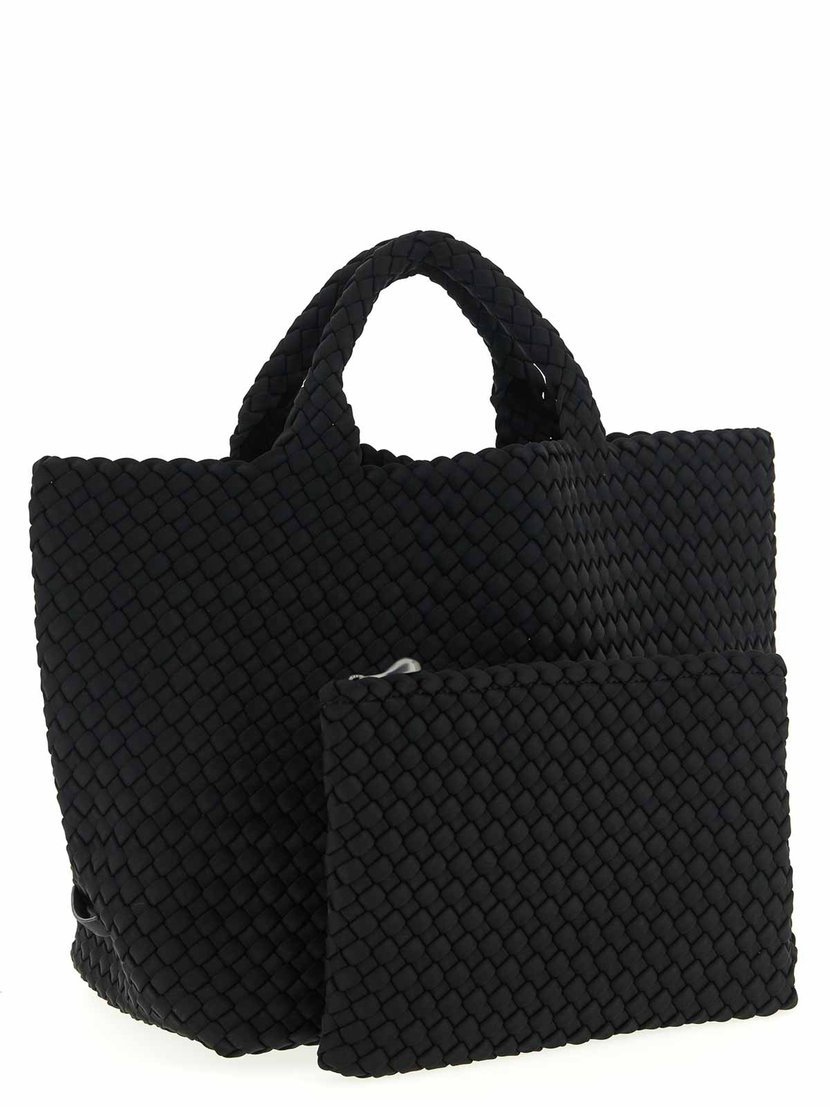 Hand-woven neoprene st. barths medium shopping, double fixed handle, tone-on-tone logo patch on the side, and removable matching clutch. handcrafted product, any imperfections are to be considered characteristics of uniqueness.