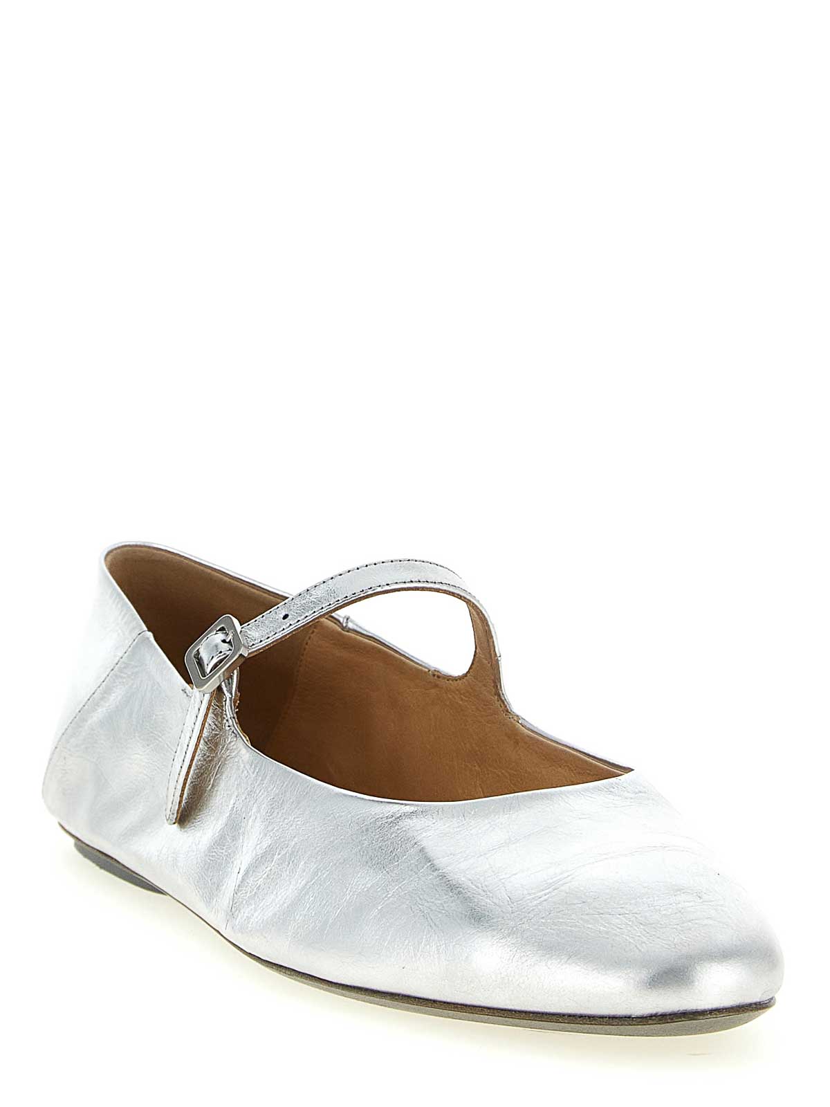 strascico' ballet flats in rag laminated leather, rounded and tapered toe, adjustable strap, leather sole with round rubber heel.