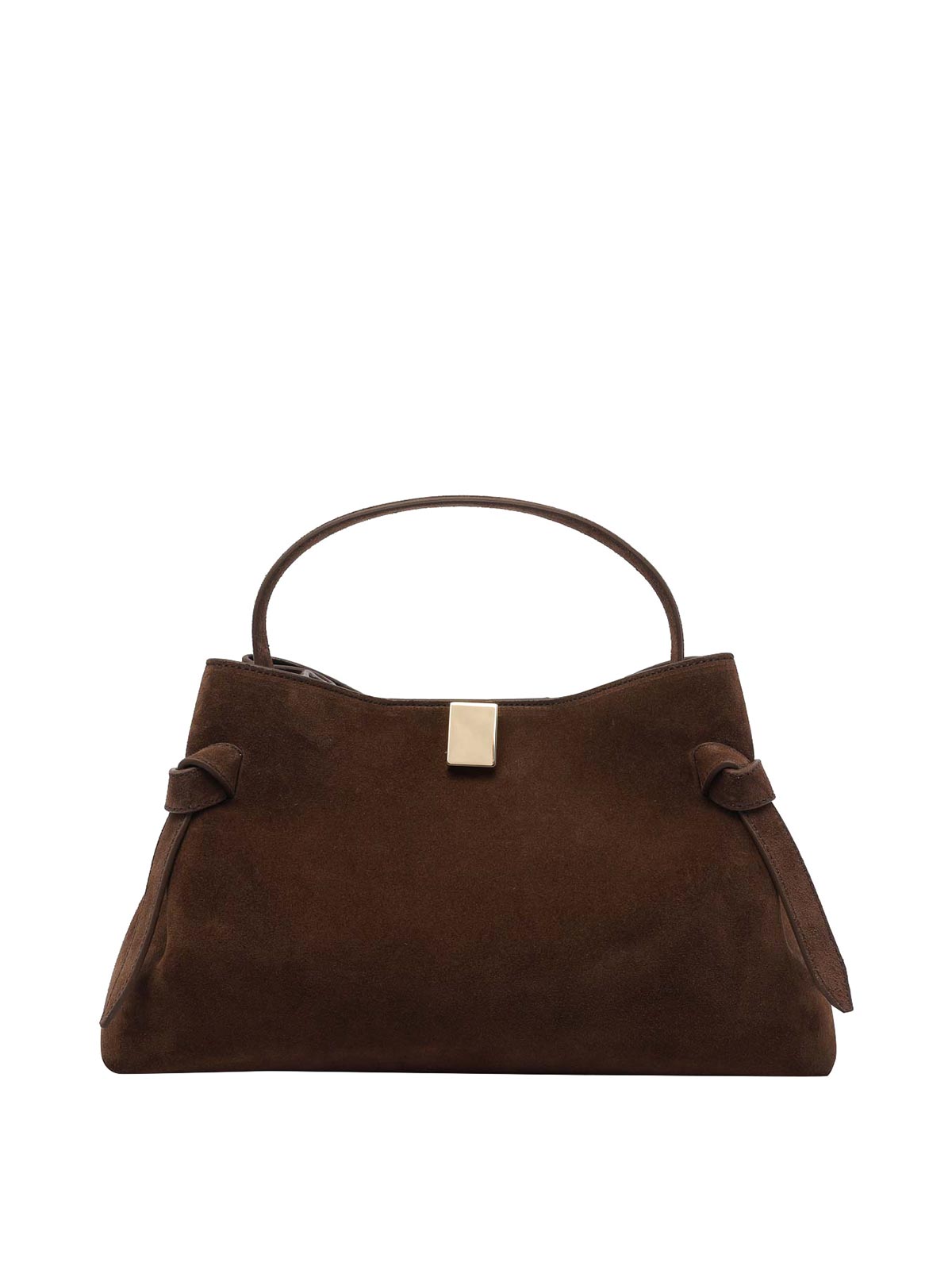 Yuzefi brown suede gyoza handbag, magnetic closure, 1 handle, adaptable and removable strap, suede model