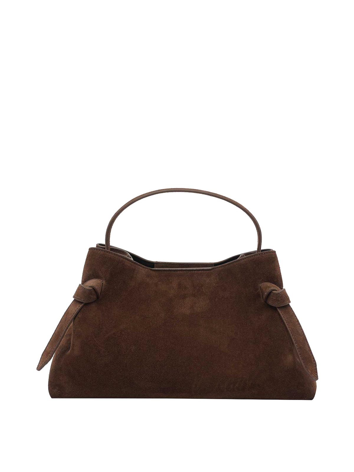 YUZEFI: totes bags - Suede Gyoza Handbag
