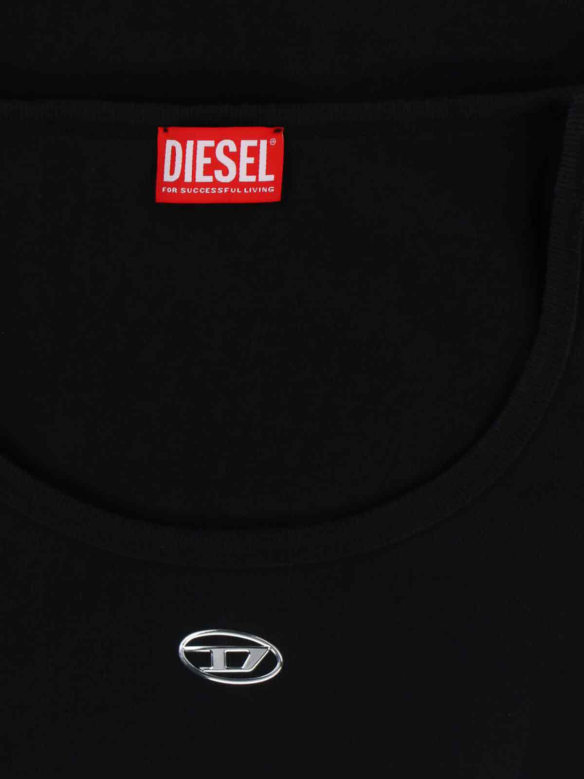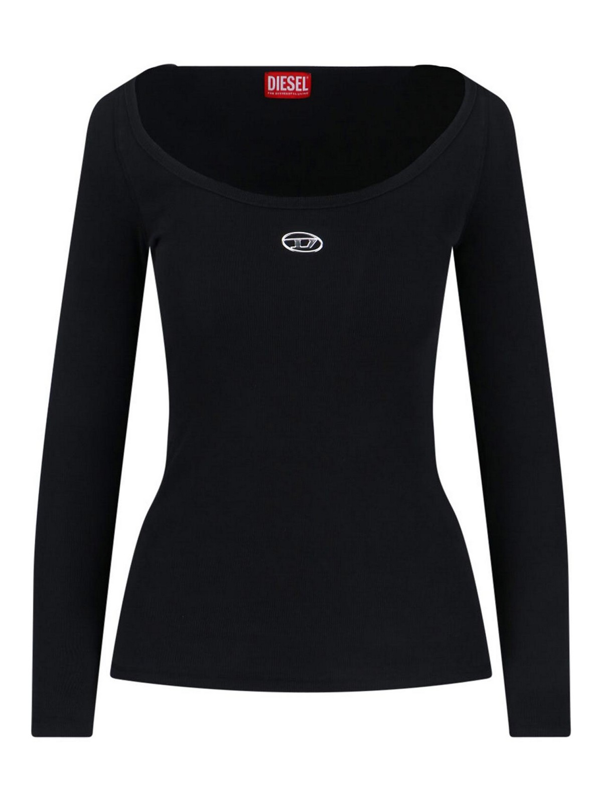 Diesel t-bal-od sweater, in black organic cotton, ribbed workmanship, round neckline, long sleeves, oval d logo in silver metal on the front, straight hem.