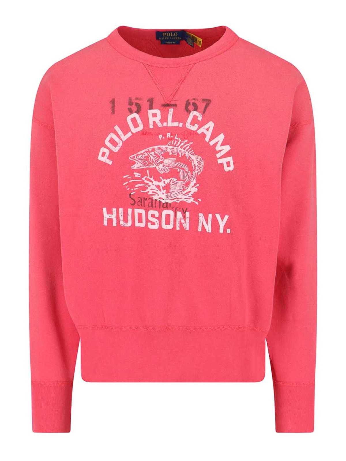 Polo Ralph Lauren camp sweater, in red cotton, light shade, ribbed crew neck, dropped shoulders, maxi contrasting print on the front, ribbed finishes, straight hem.