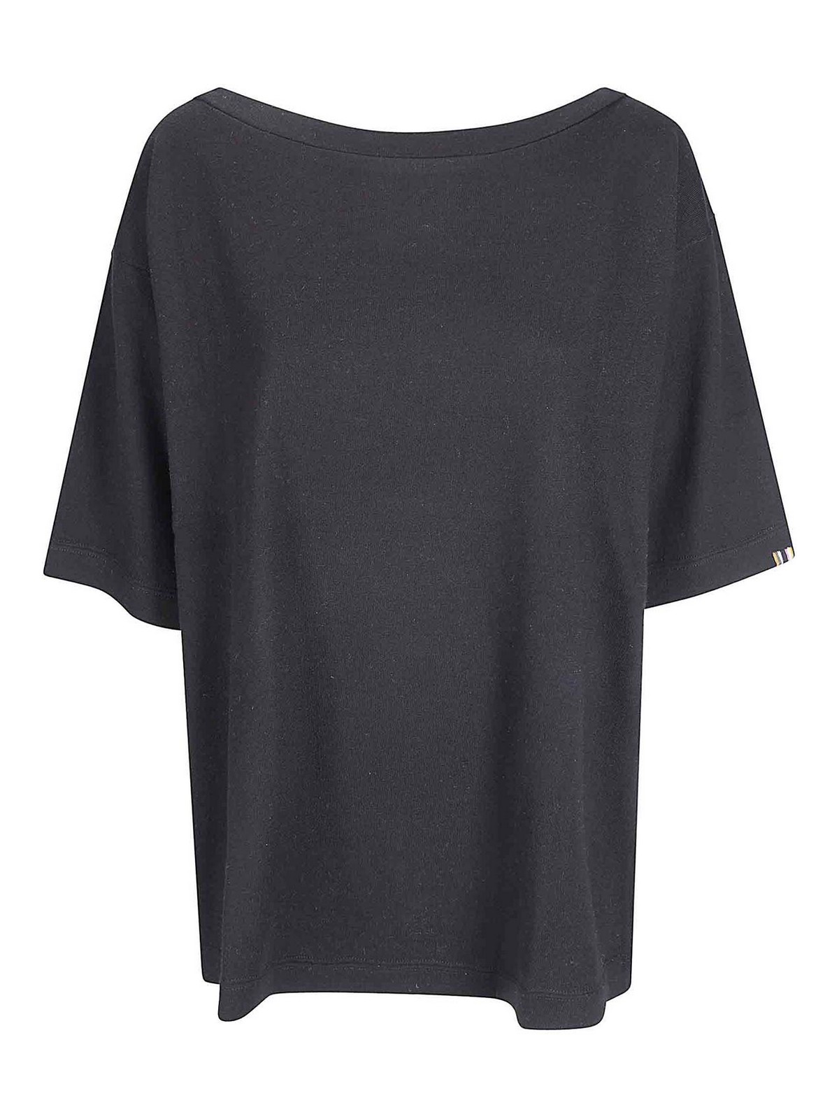 Cotton and cashmere T-shirt, oversized fit, round neck and wide boat-like collar, soft and light fabric.