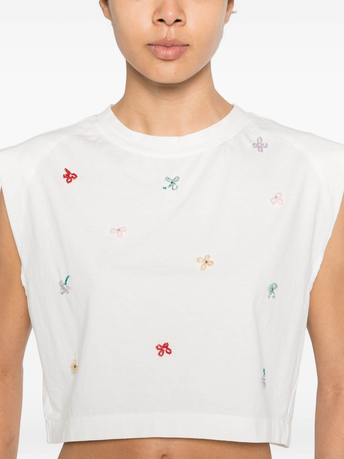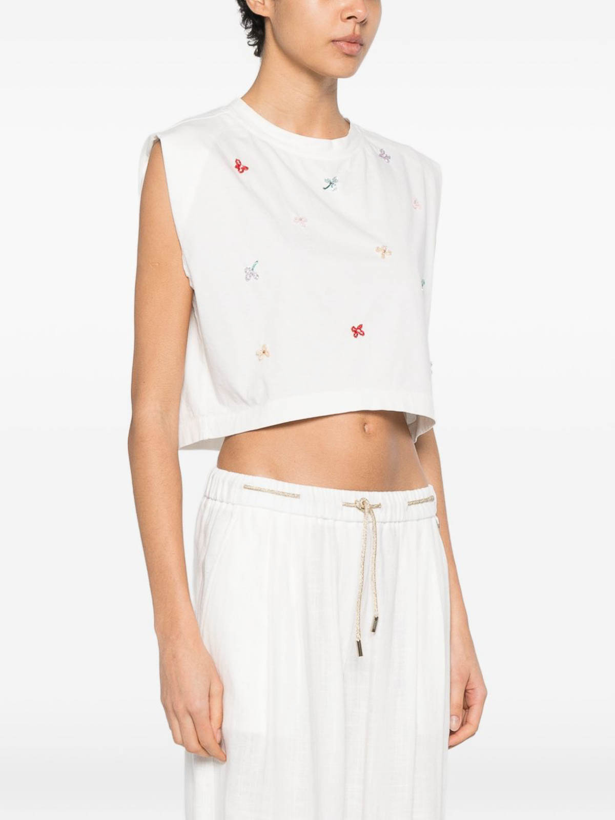White embroidered detailing round neck sleeveless cropped