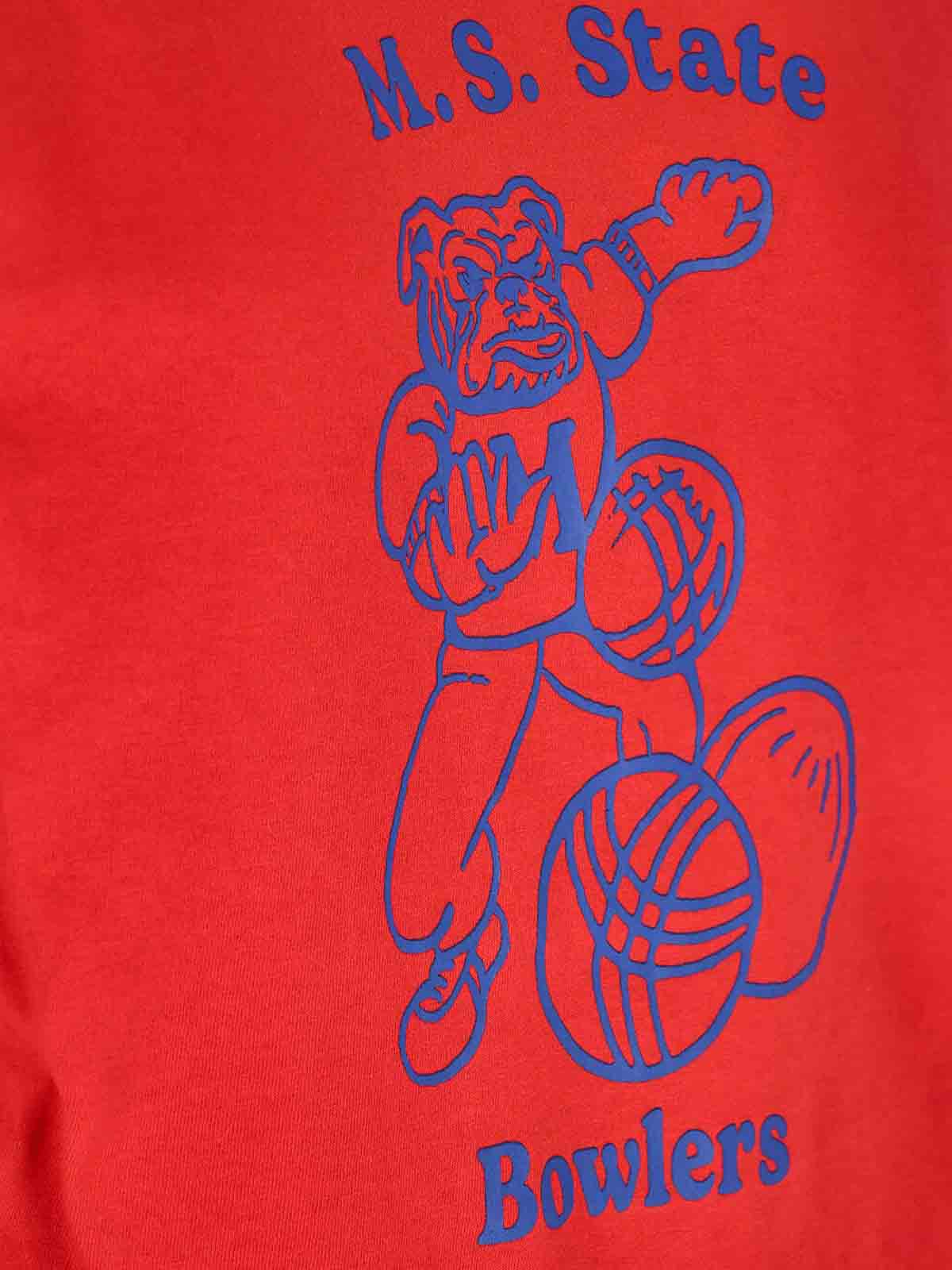 Maison Margiela logo T-shirt in red cotton, short sleeves, contrasting print on the front, four stitches embroidery detail on the back, ribbed finishes, straight hem.