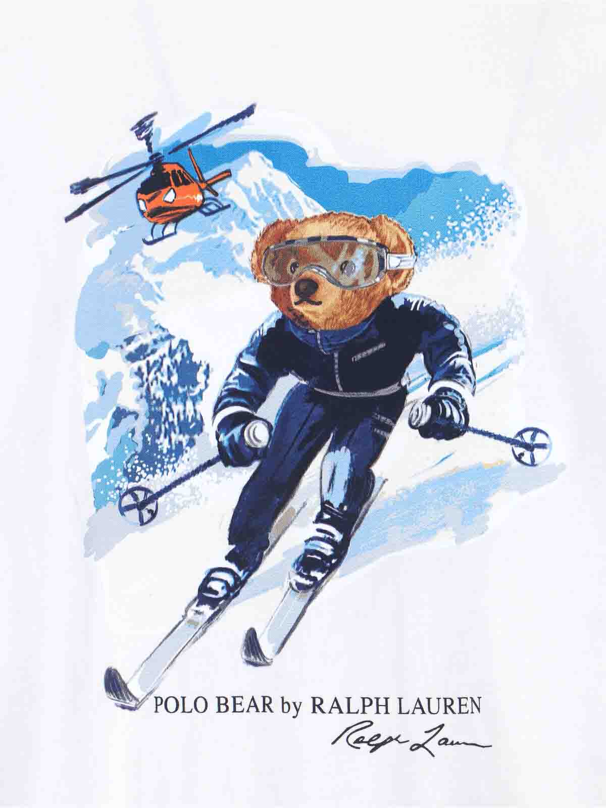 Polo Ralph Lauren Polo Bear T-shirt in white cotton, crew neck, short sleeves, contrasting multicolor Polo Bear print on the front, straight hem.