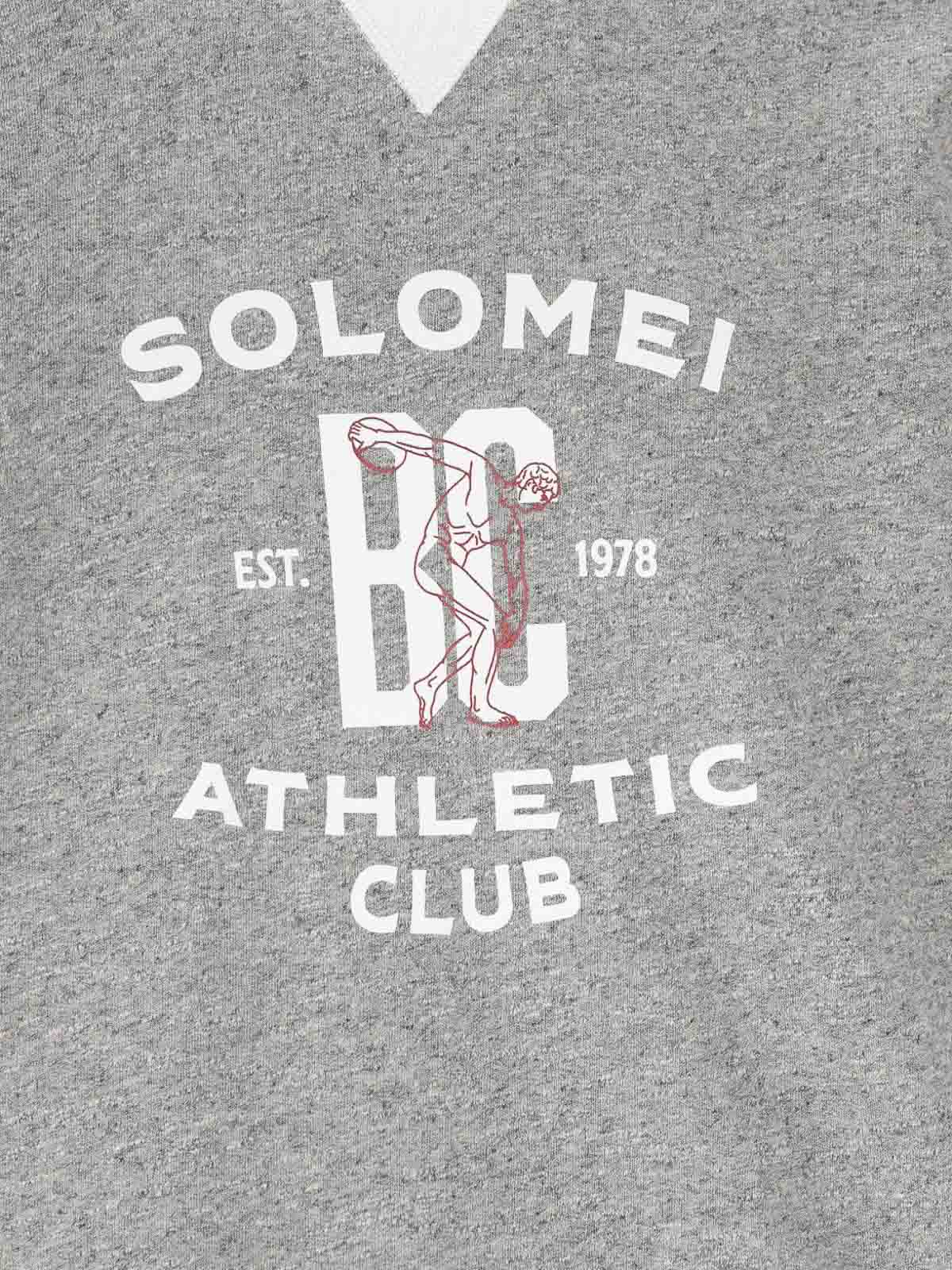 Origin: Italy Features gray crew neck logo print short sleeves.