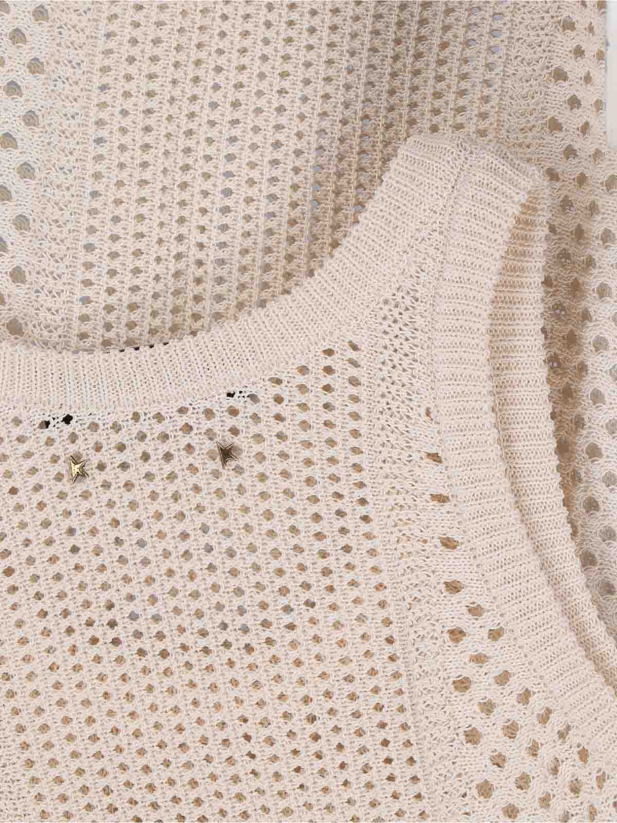 Golden Goose knitted tank top in cream cotton blend, crew neck, shoulder pads, two metal stars logo on the back, straight hem.