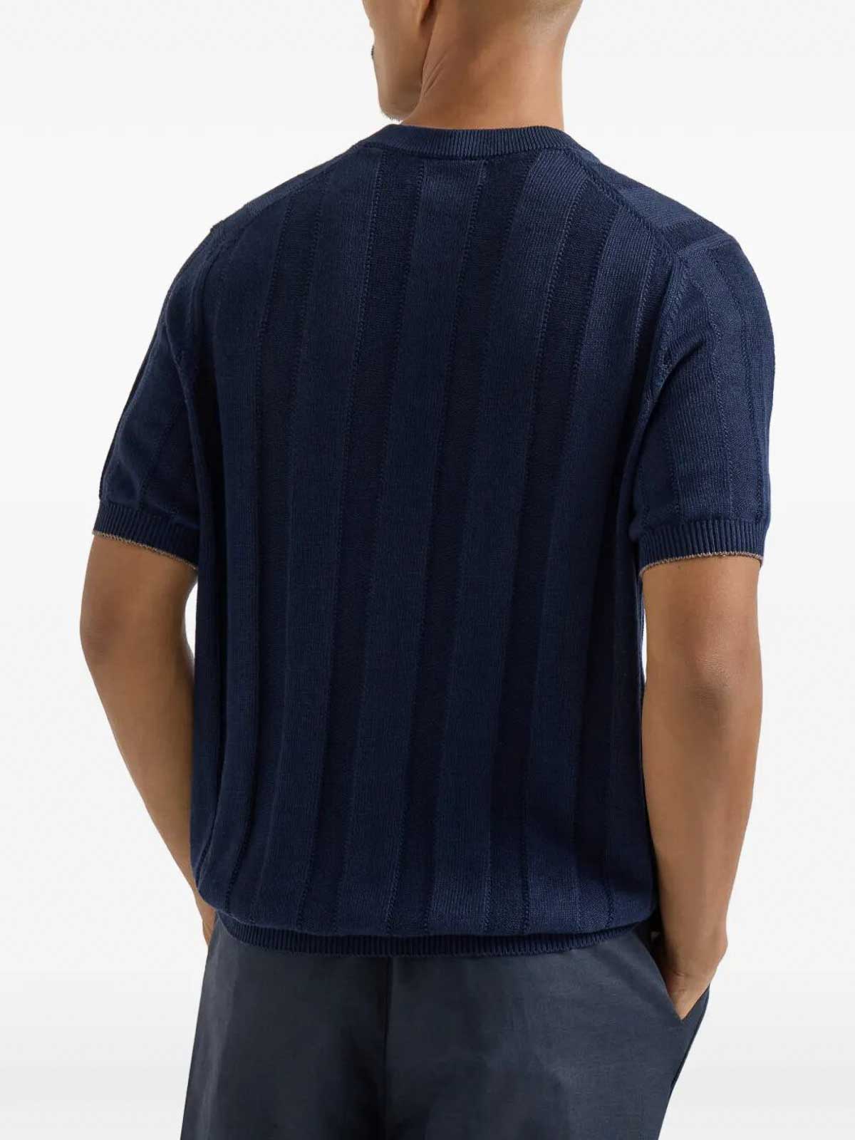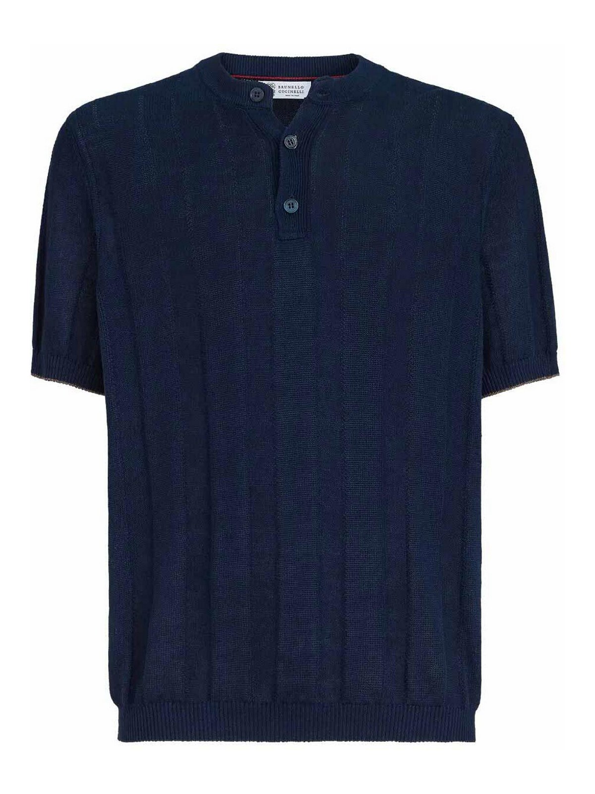 BRUNELLO CUCINELLI: t-shirts - Textured Rib Knit T-Shirt With Henley Collar
