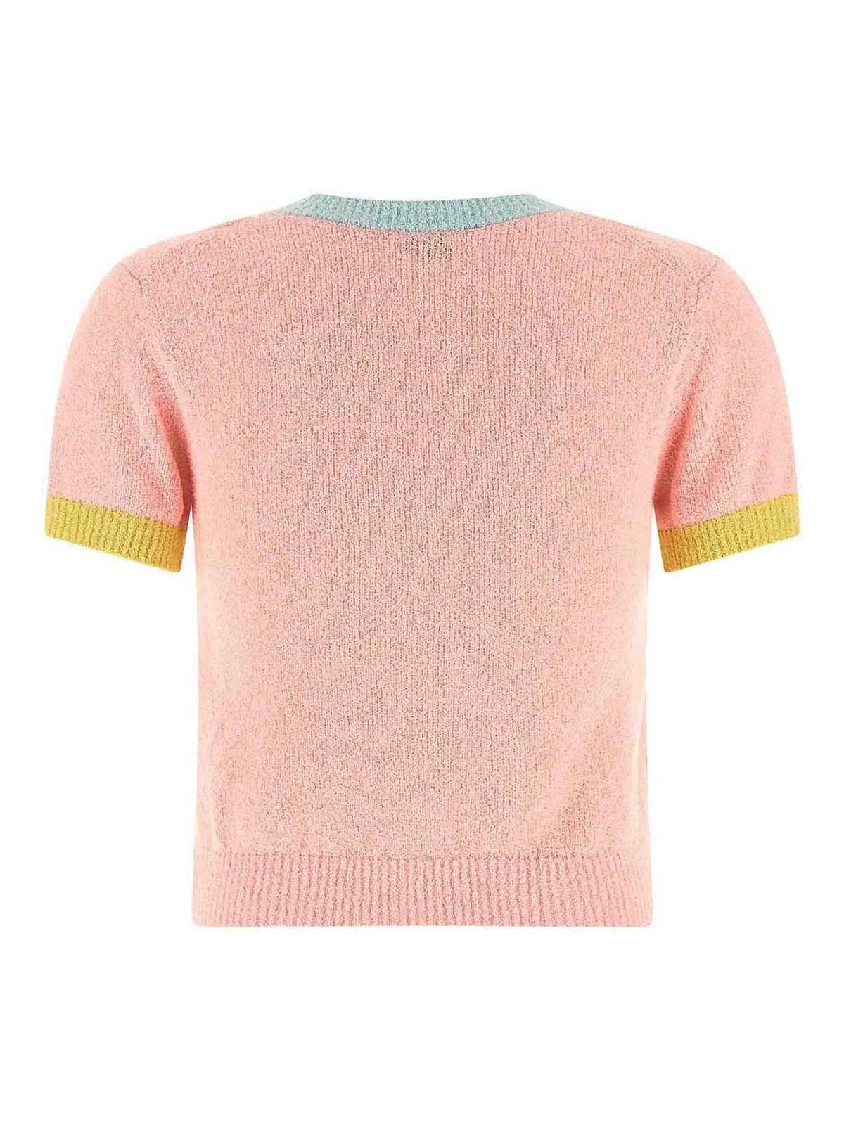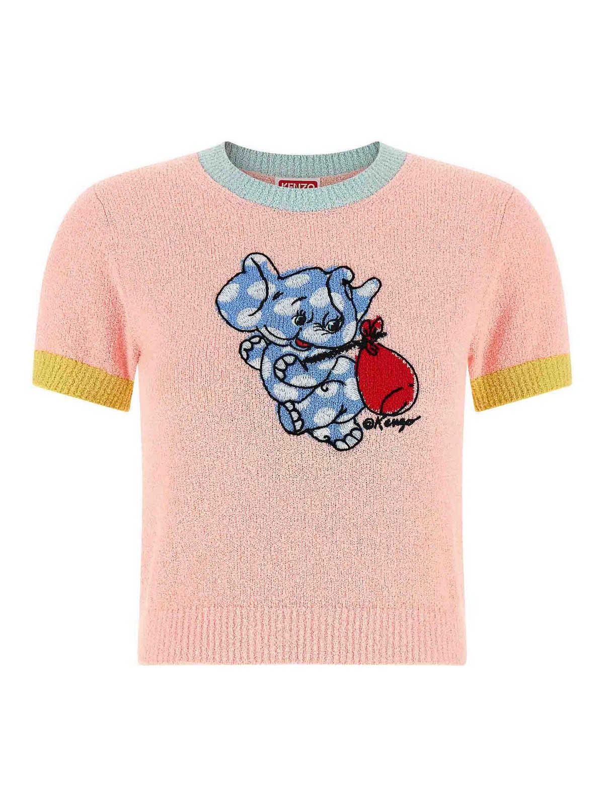 Terry cotton top with contrasting details, crop pattern, intarsia and 'kenzo cartoon' embroidery on the front, crew neck, short sleeves.