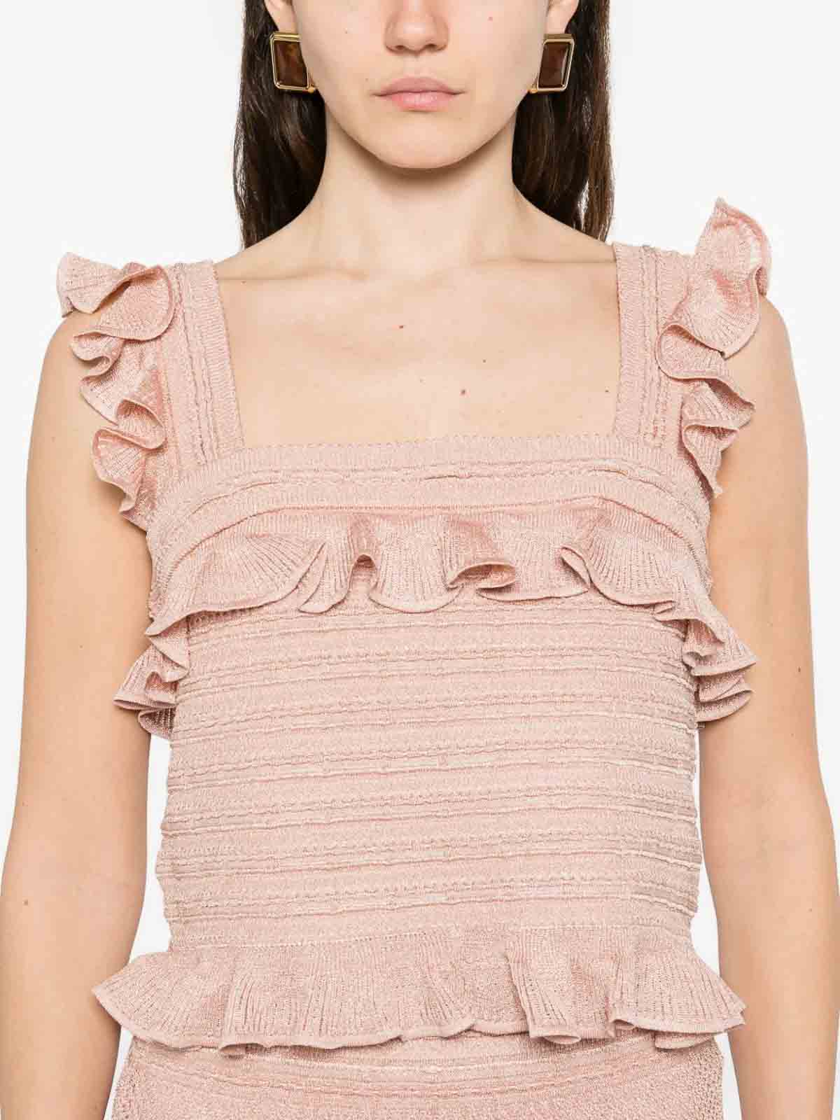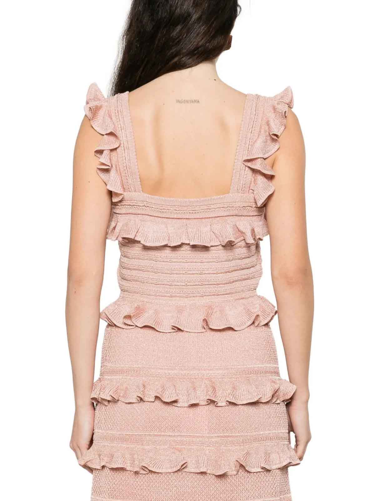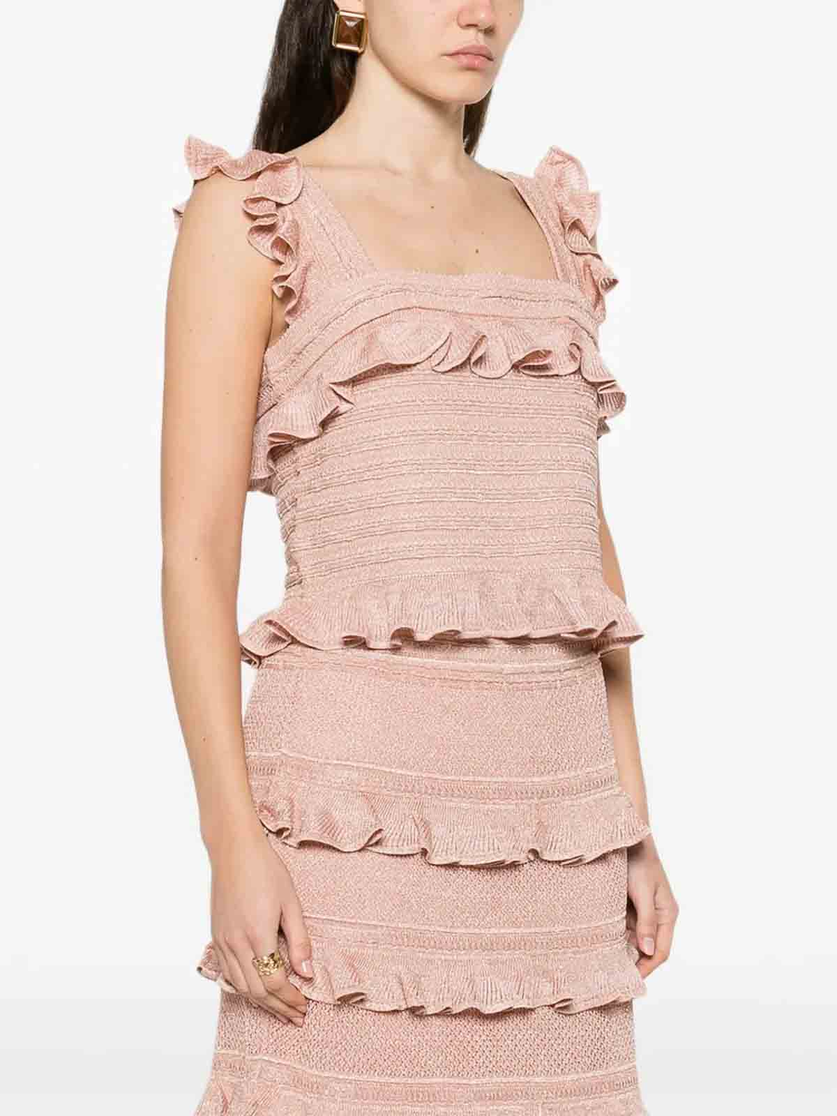 Designer pink ruffled trim square neck shoulder straps ribbed design