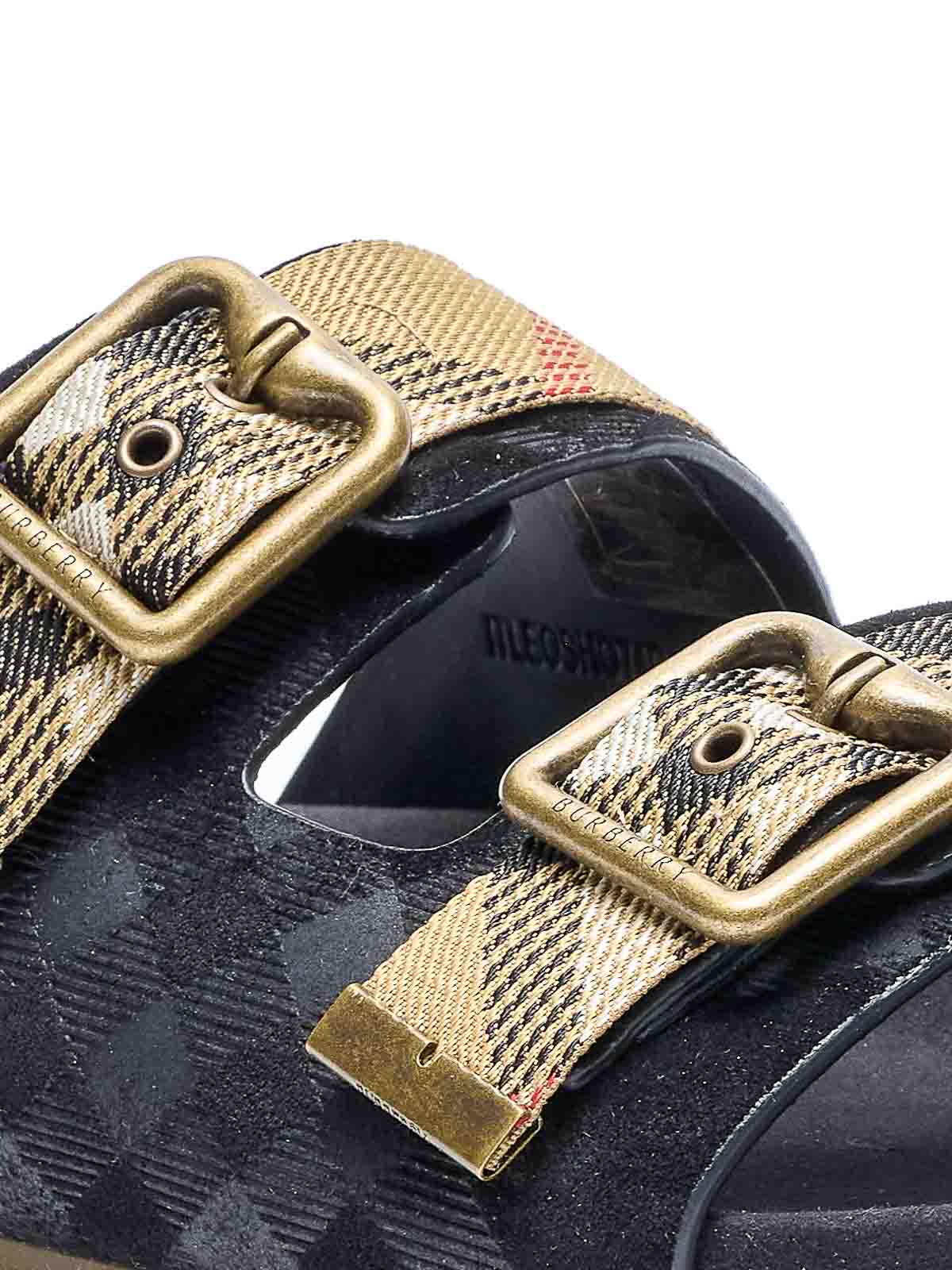Man burberry sandals, urchin model, all over check print detail, buckles, logo.