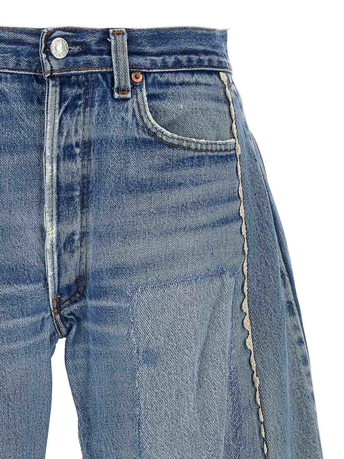 Each garment is unique and different please contact us for colors available in your size. cotton denim vintage lasso jeans with hand-knit lace inserts, crop model with wide, curved leg, front button closure, five pockets, frayed hem, back salpa. this product is made from authentic vintage levi's 501s collects ed in the american west. each piece is unique. due to the unique characteristics of vintage garments, the garment may have imperfections that are not to be considered defects, the shade of the denim may vary slightly.