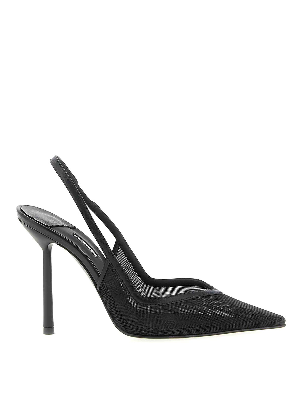 vivienne' mesh slingbacks, leather inserts, pointed model with stiletto heels, back opening with strap and side elastic, leather insole and leather sole with central non-slip.