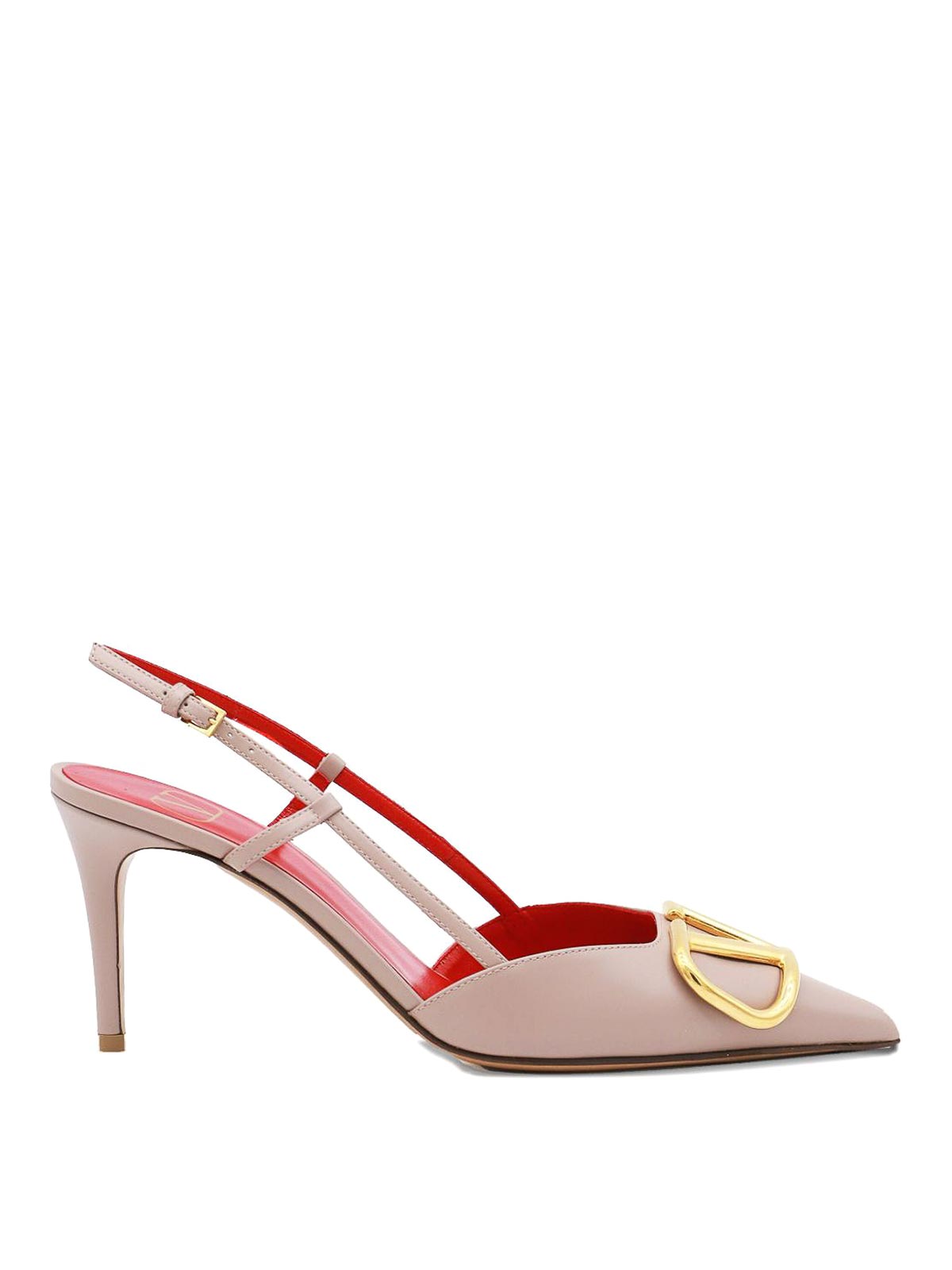 Pink calf leather vlogo signature plaque buckle-fastening slingback strap pointed toe 80mm stiletto heel branded insole 80mm high heel