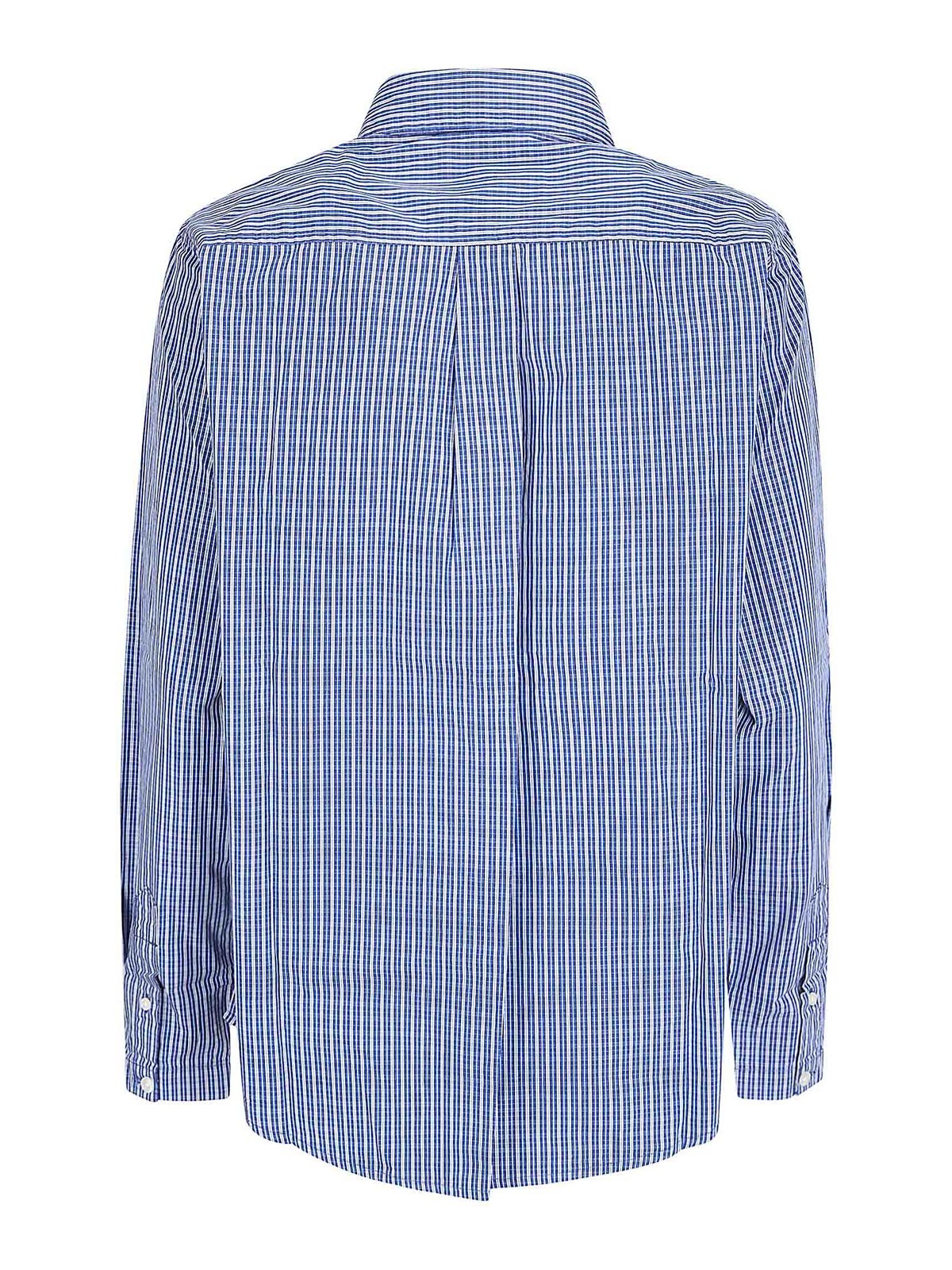 Striped poplin shirt, loose fit, collar with buttons, front closure with white buttons.