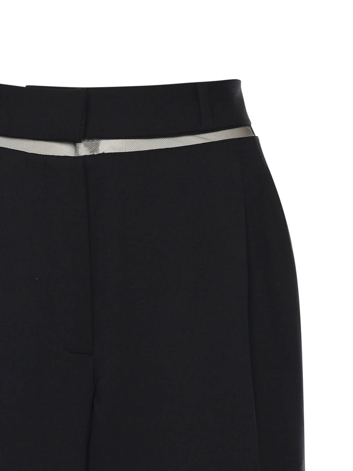 made of a wool blend with tulle inserts, concealed zip and hook closure, belt loops, size shown is s, color: black