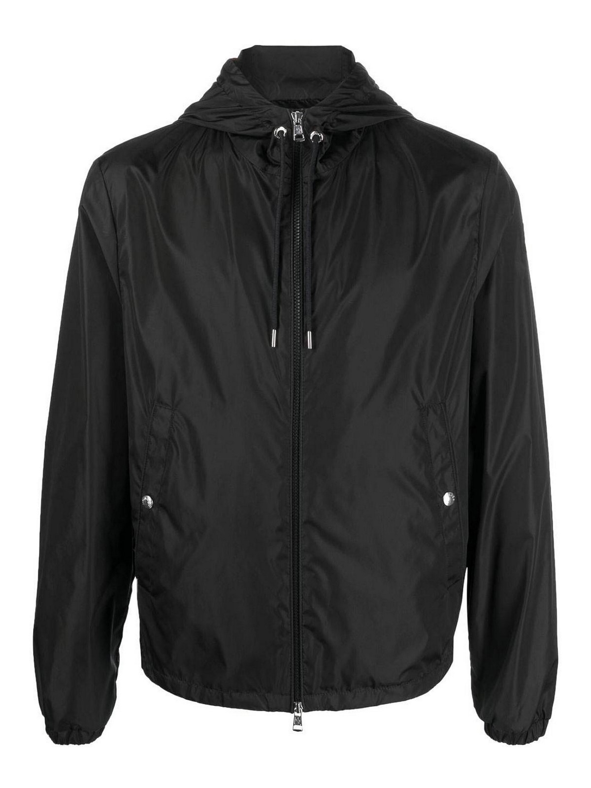 Windbreaker in black hooded with zip and side pockets by moncler