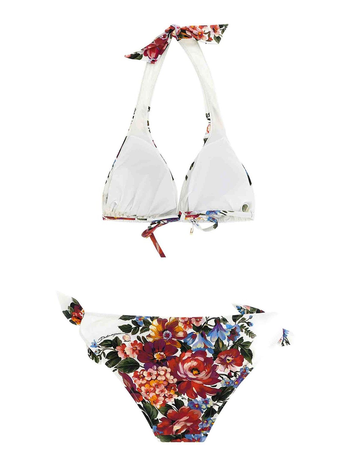 Bikini de licra con estampado floral integral reedición de 2000 que consta de una parte superior triangular con acolchado extraíble, cordones ajustables y anudados y calzoncillos clásicos con cordones ajustables y nudos laterales. Las diferencias en la colocación del estampado que puedes encontrar en este producto son una característica de los productos hechos a mano de dolce&gabbana. Una peculiaridad que hace que cada prenda o accesorio sea único y exclusivo.