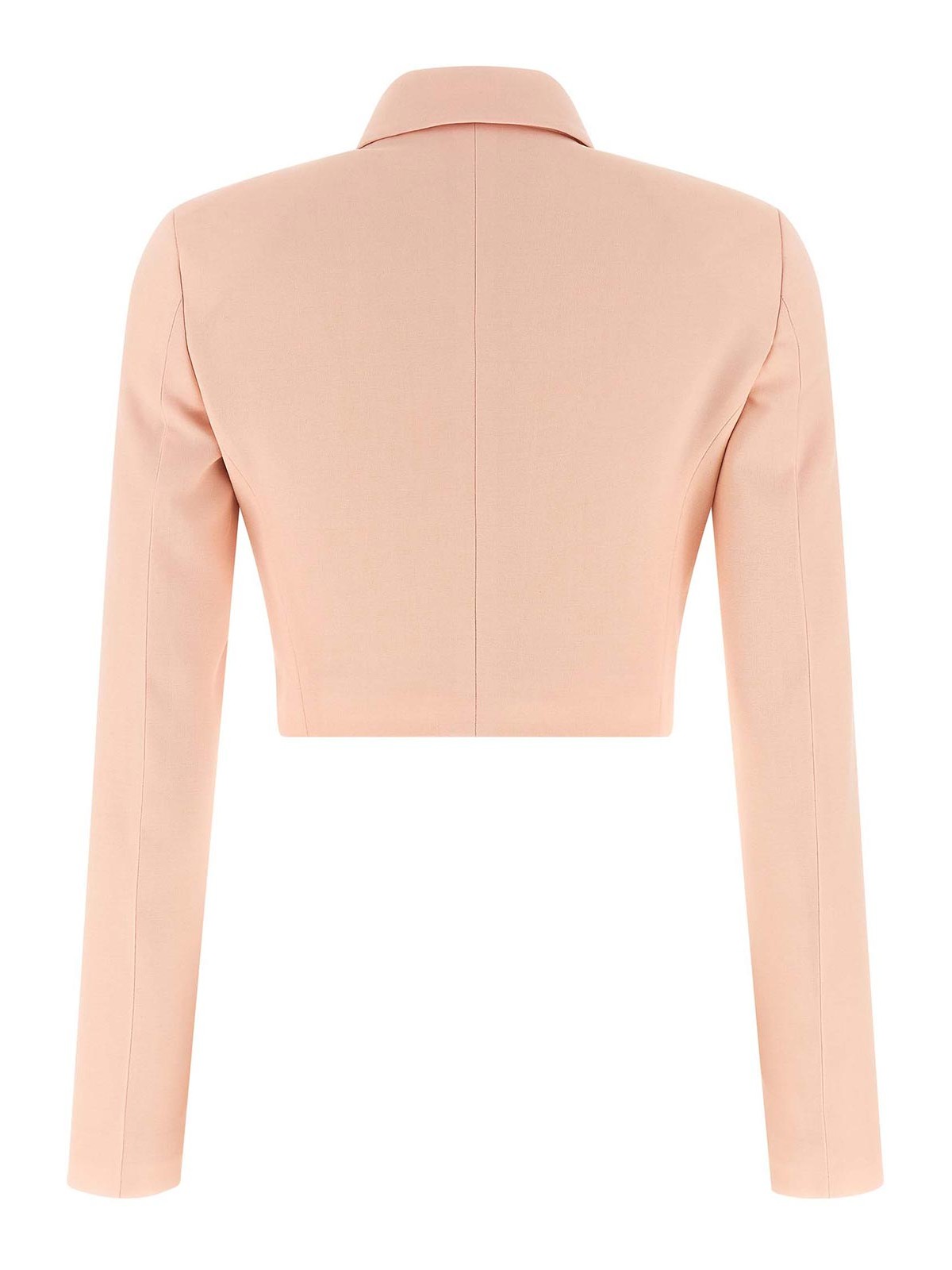 Blazer bolero de lana tropical con cuello camisero, cierre de gancho en la parte delantera, correa de hombro estructurada, manga larga, forro de viscosa con monograma.