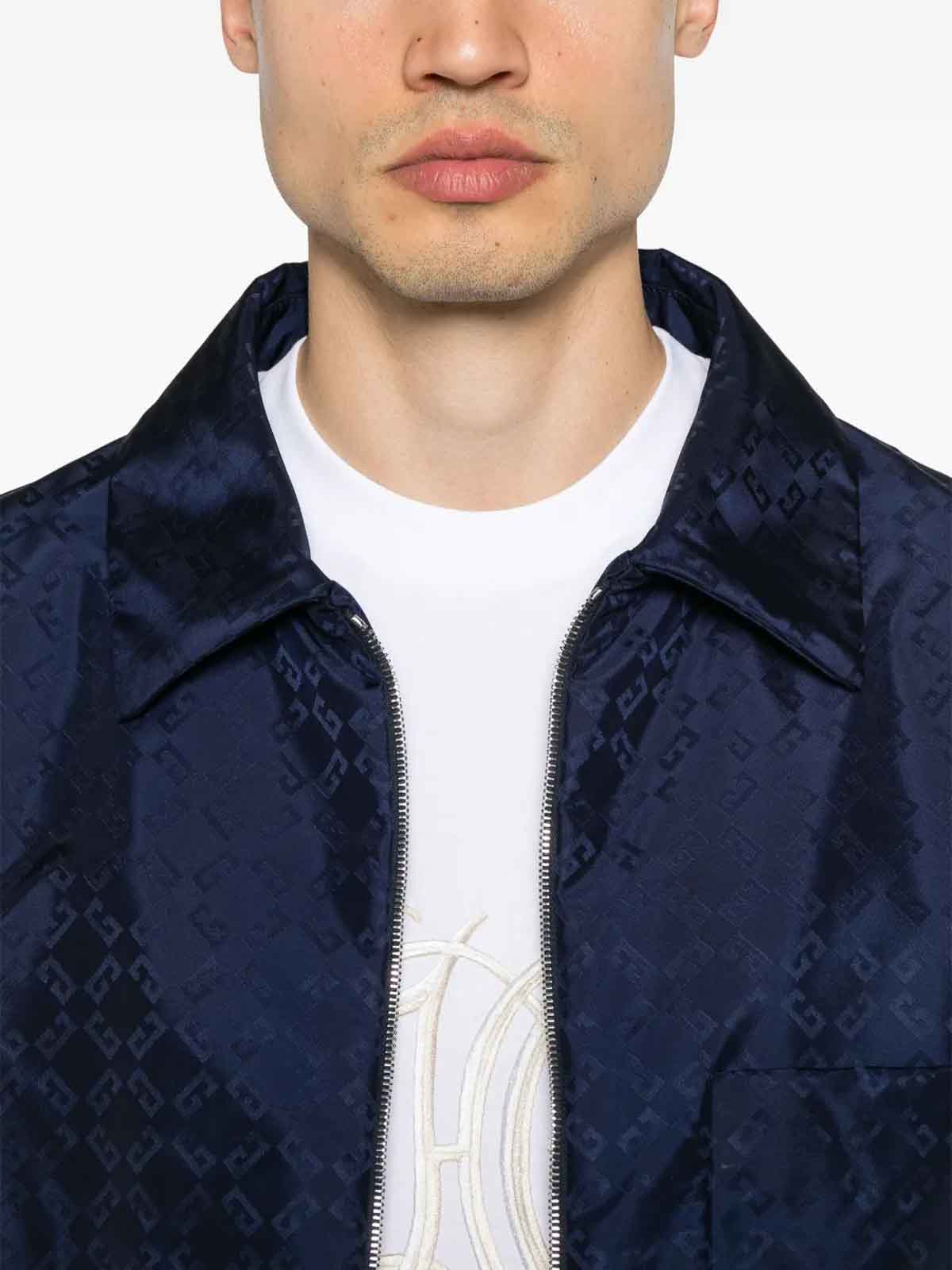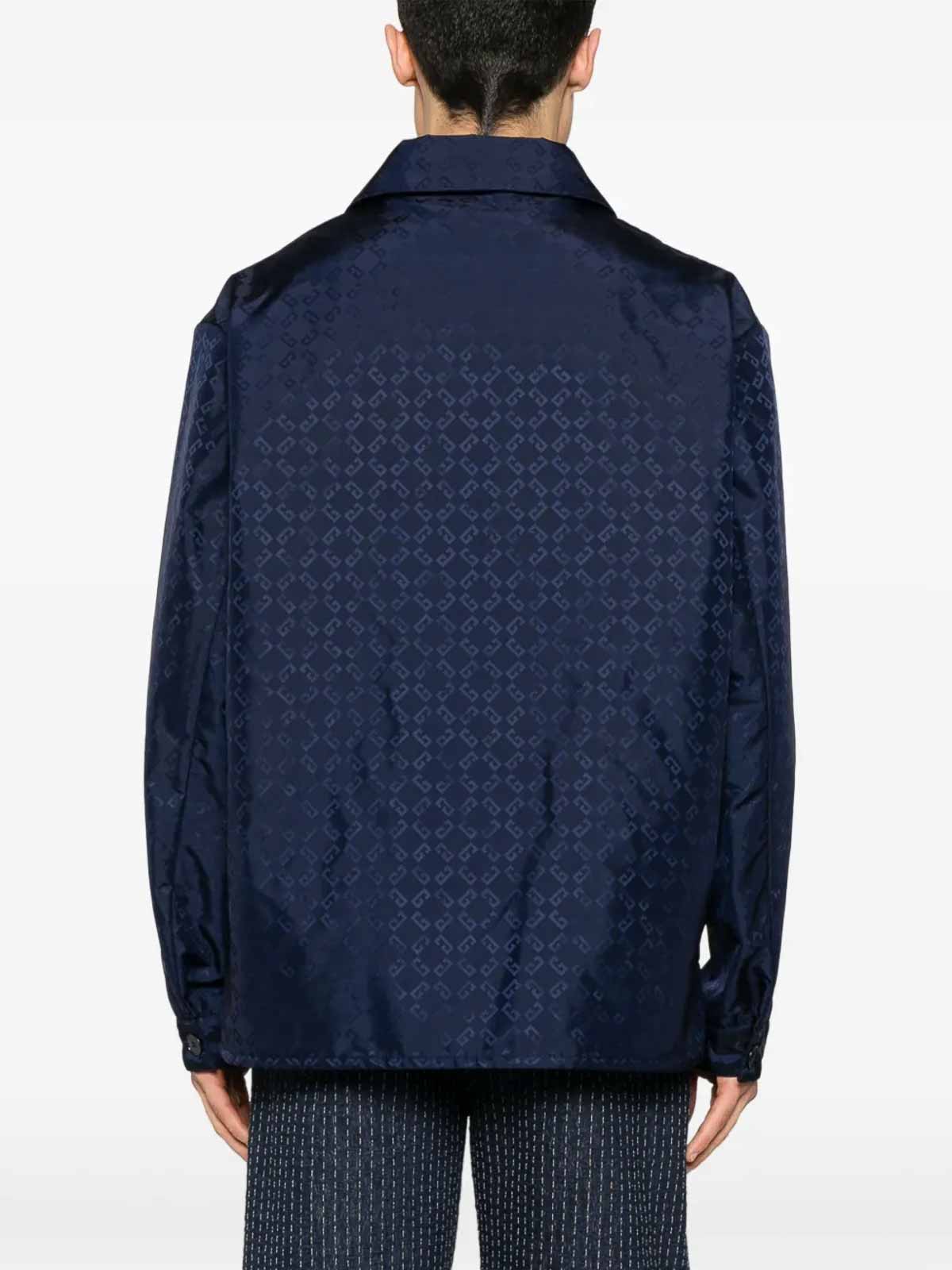 Bolsillo de parche en el pecho con cremallera en azul marino de diseñador, dos bolsillos de parche, mangas abotonadas