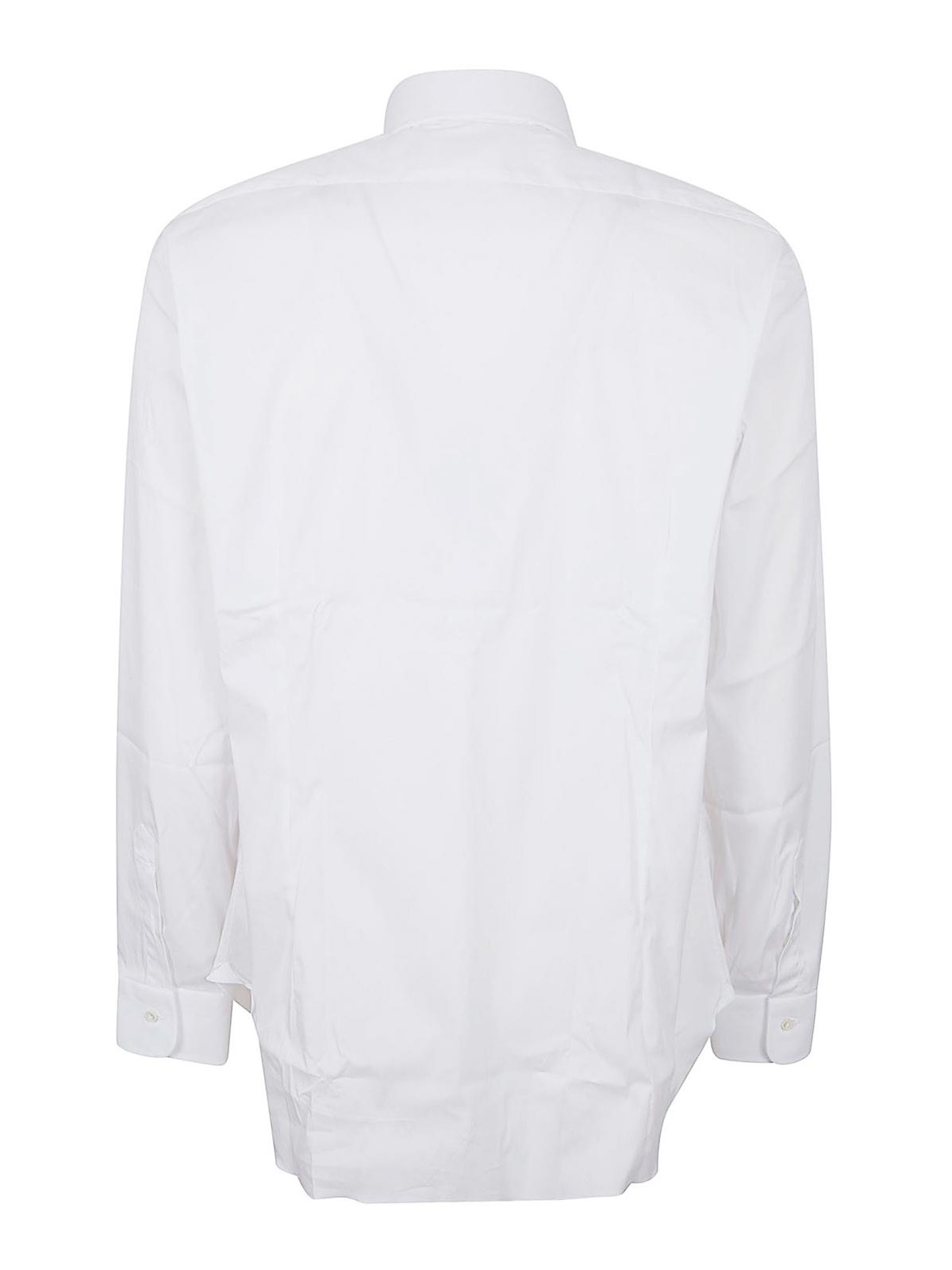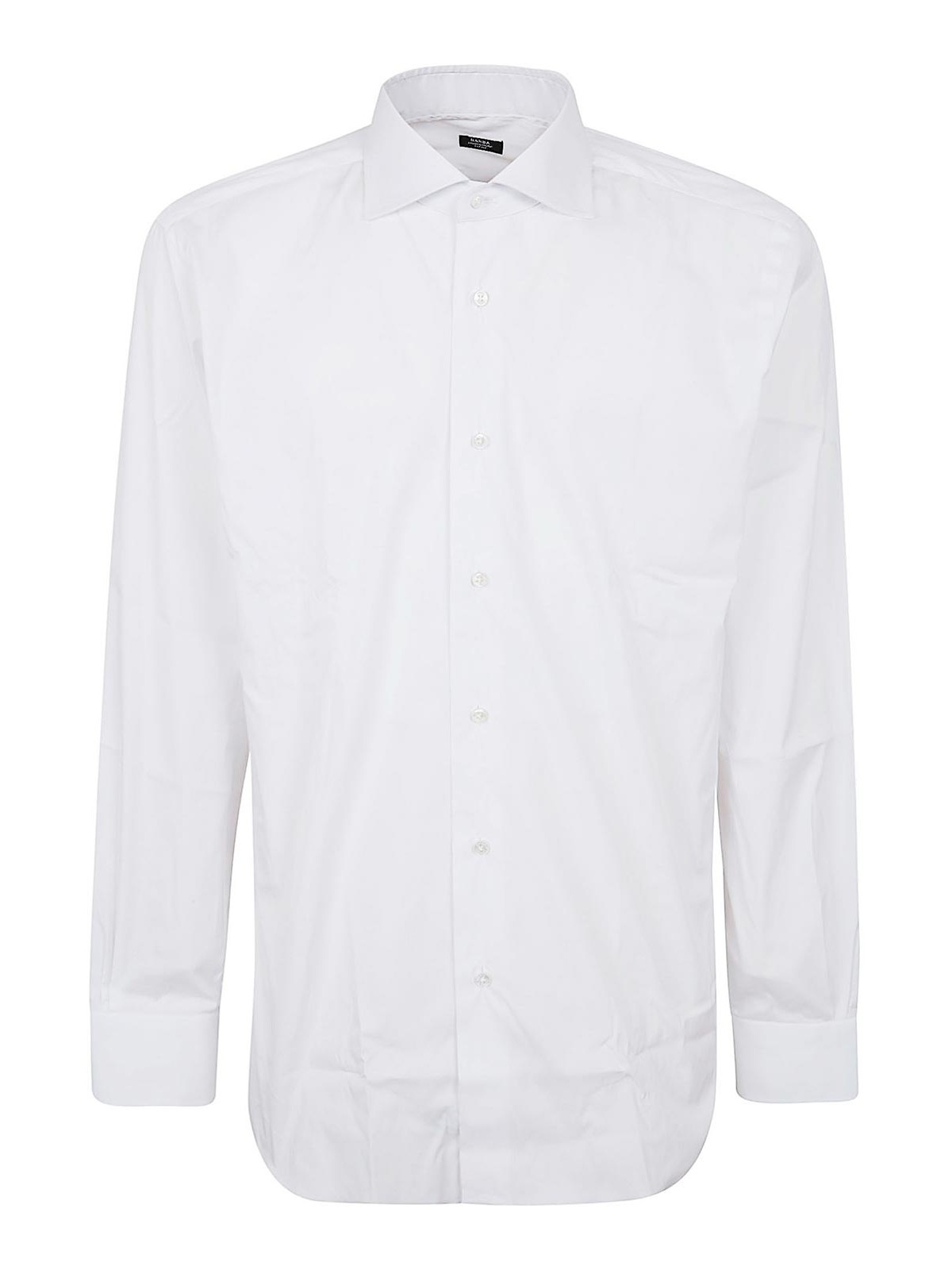 Camisa de algodón ligeramente elástica de barba napoli: cuello clásico con botones también presentes en los puños, corte regular, dobladillo redondeado