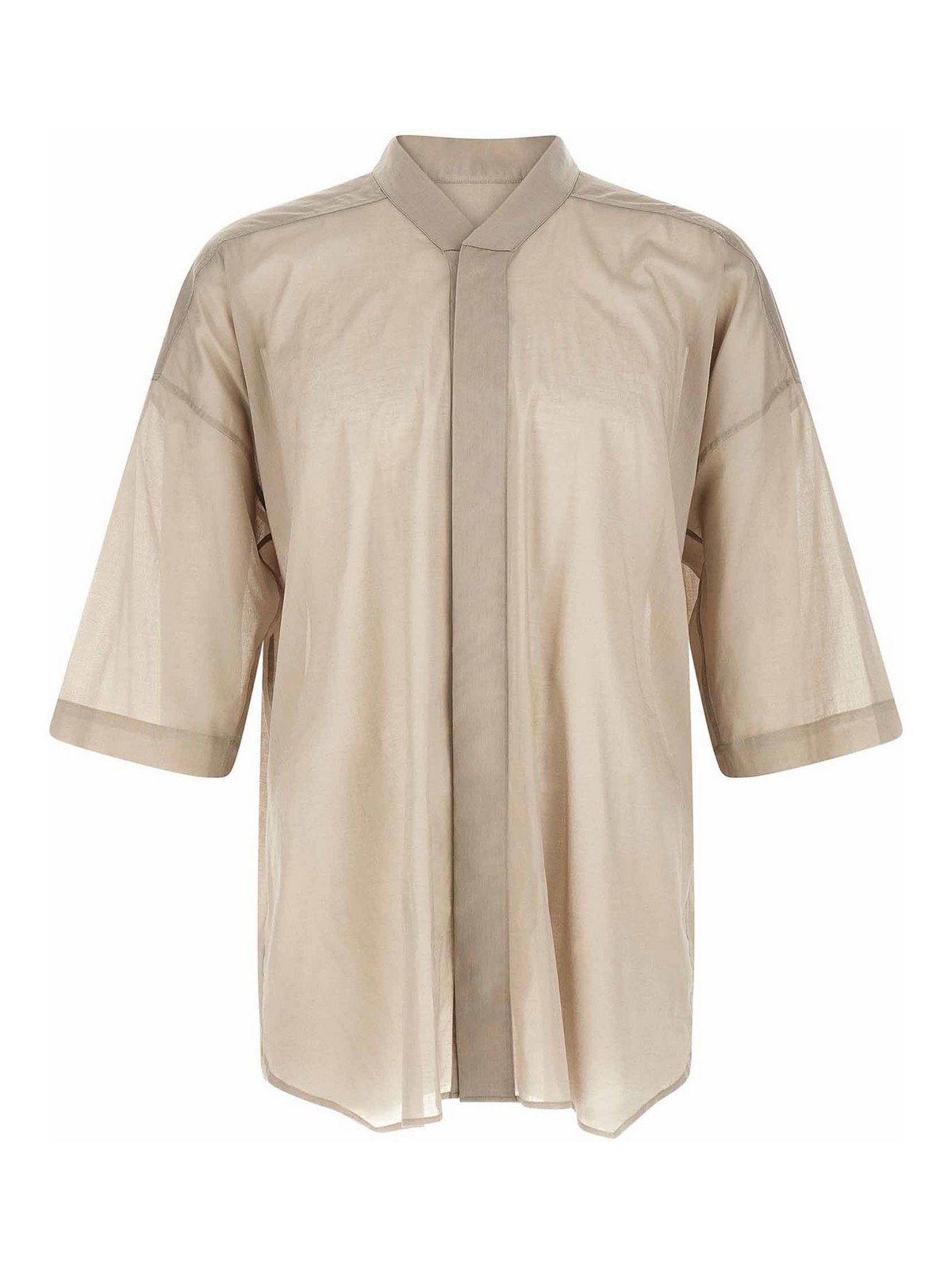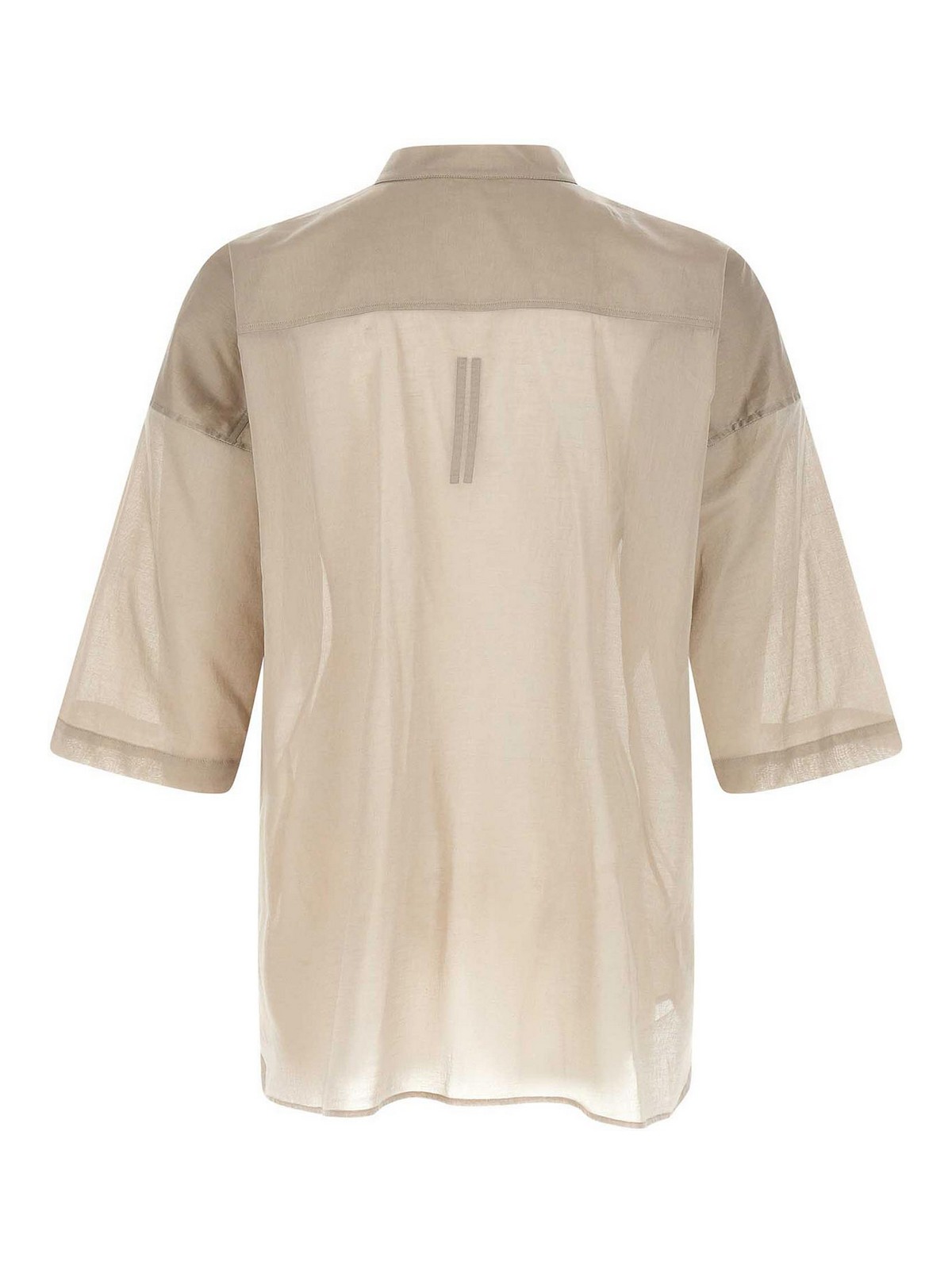Camisa de gasa de algodón semitransparente Jumbo Faun, cuello alto, cierre con botones a presión en la parte delantera, mangas cortas anchas con hombros caídos.