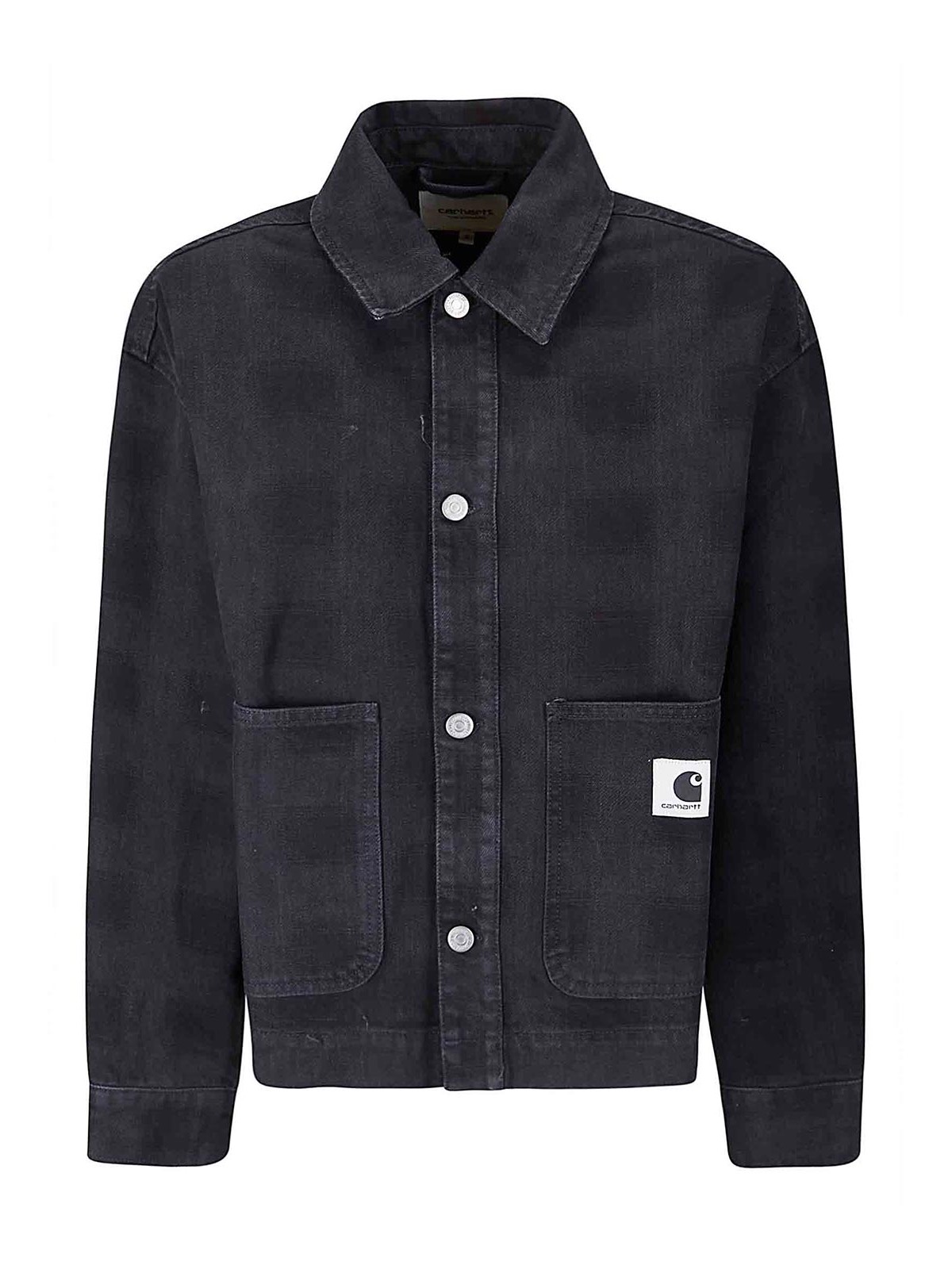 Camisa gruesa de algodón con efecto vaquero, grandes bolsillos frontales con solapa con logotipo y corte holgado.