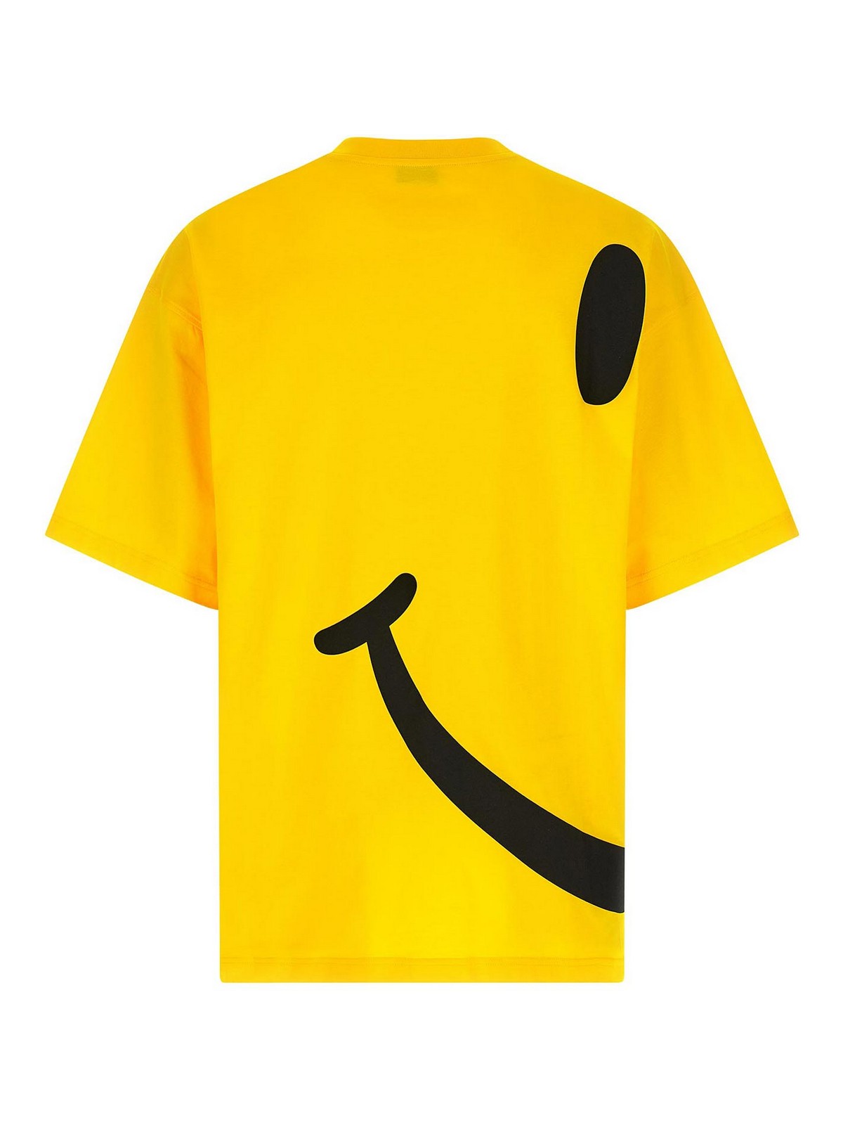 Camiseta de punto de algodón con estampado «smiley» en la parte delantera y trasera, cuello redondo, mangas cortas con hombros caídos y estampado del logotipo.