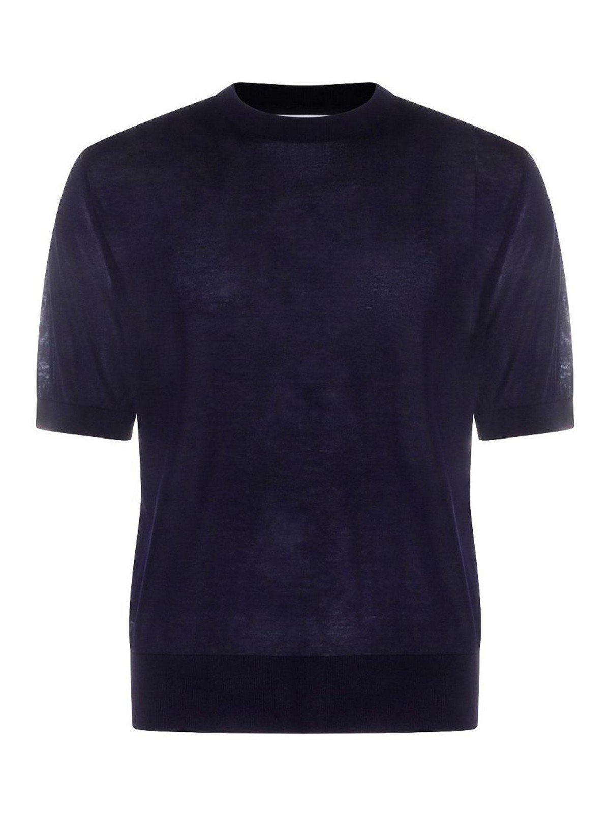 Camiseta azul de punto fino calibre 7