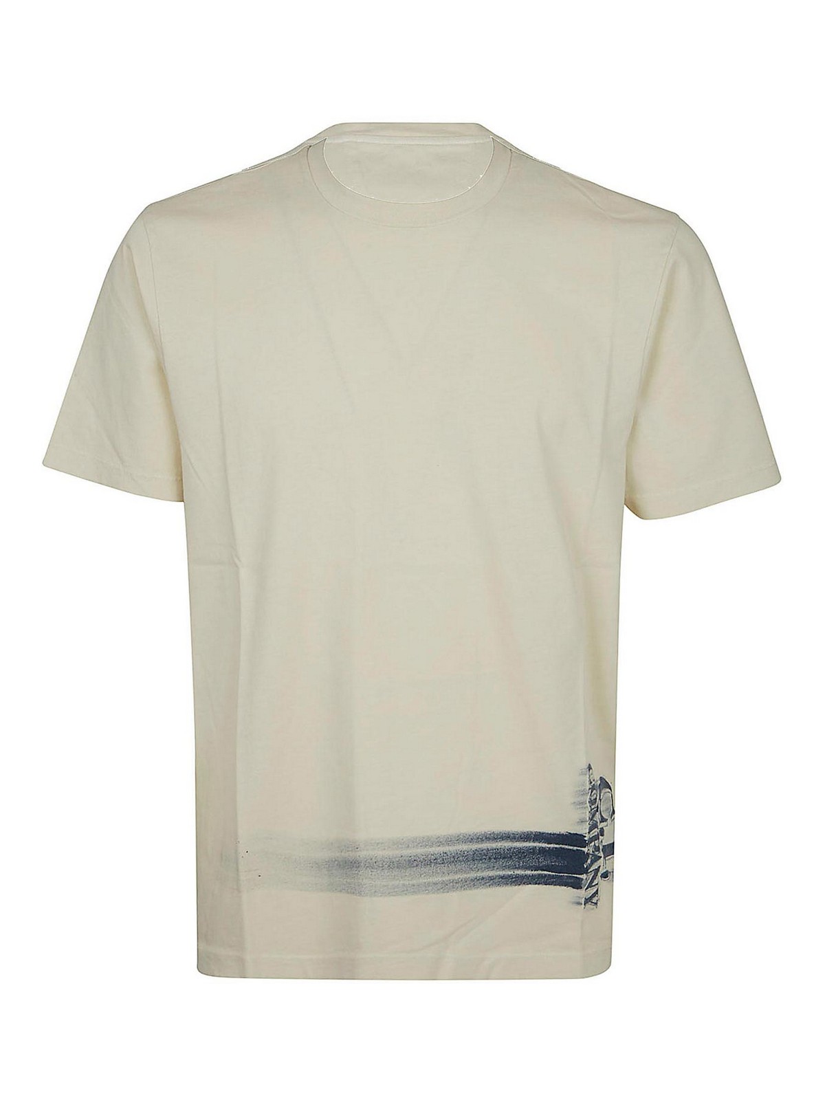 Camiseta en punto de algodón/suave y transpirable de cp company, mangas cortas, cuello redondo acanalado, diseño de corte regular, caracterizada por una base de reserva sobre la que se aplica un pincel a mano, que resalta el color y resalta la escritura bordada