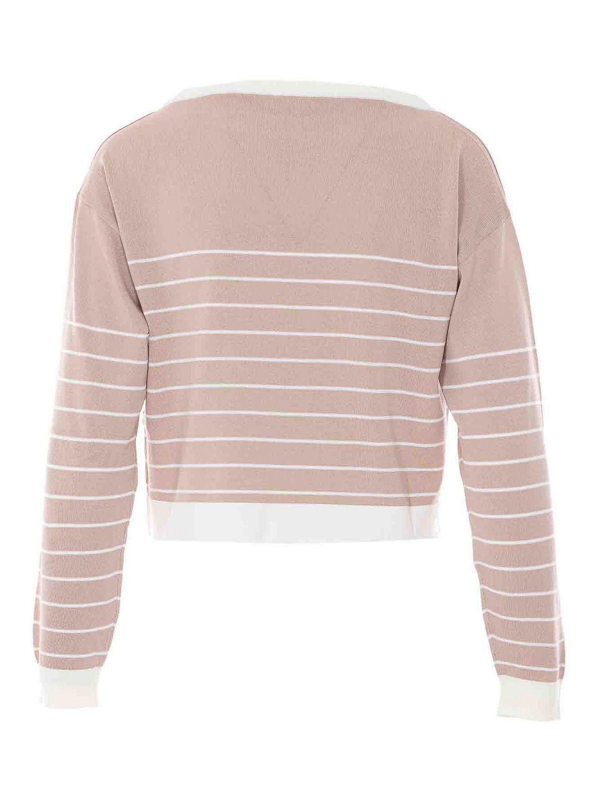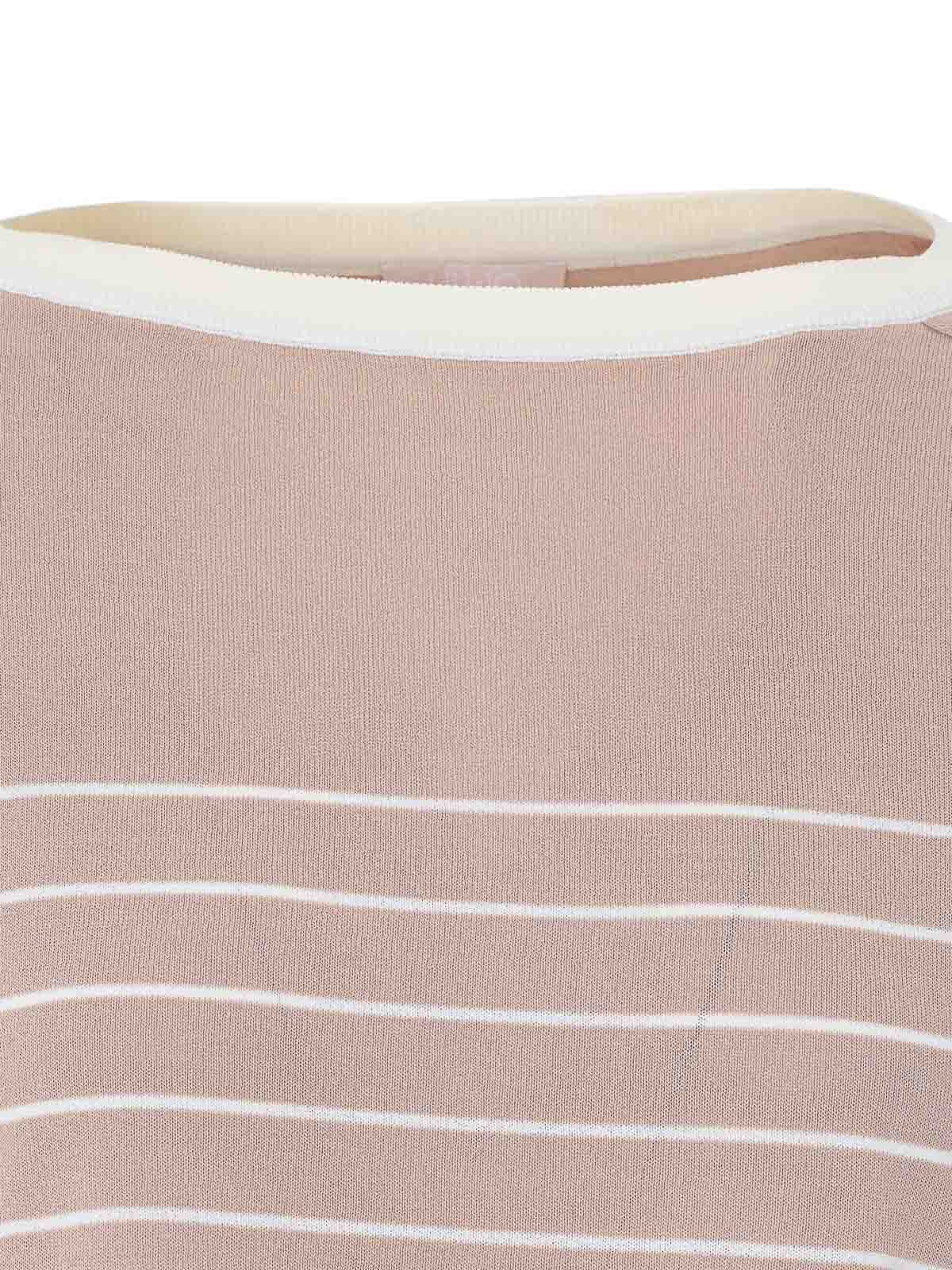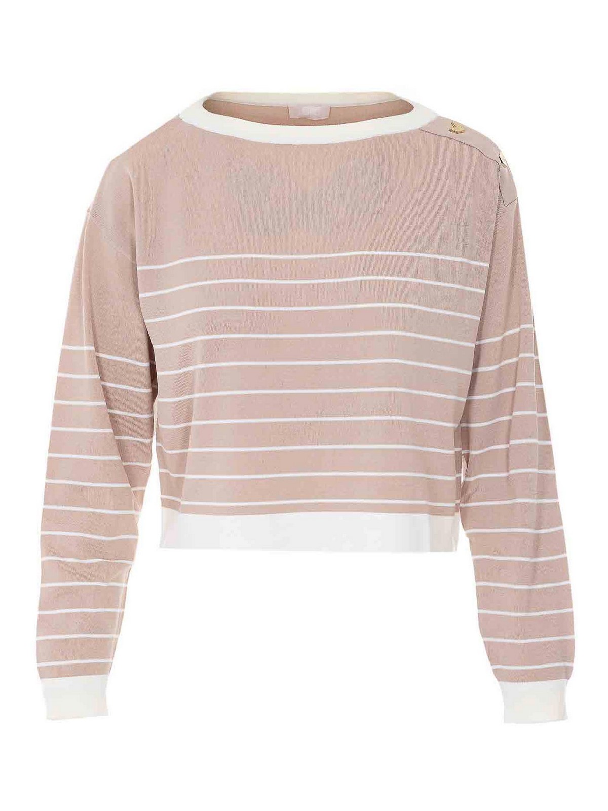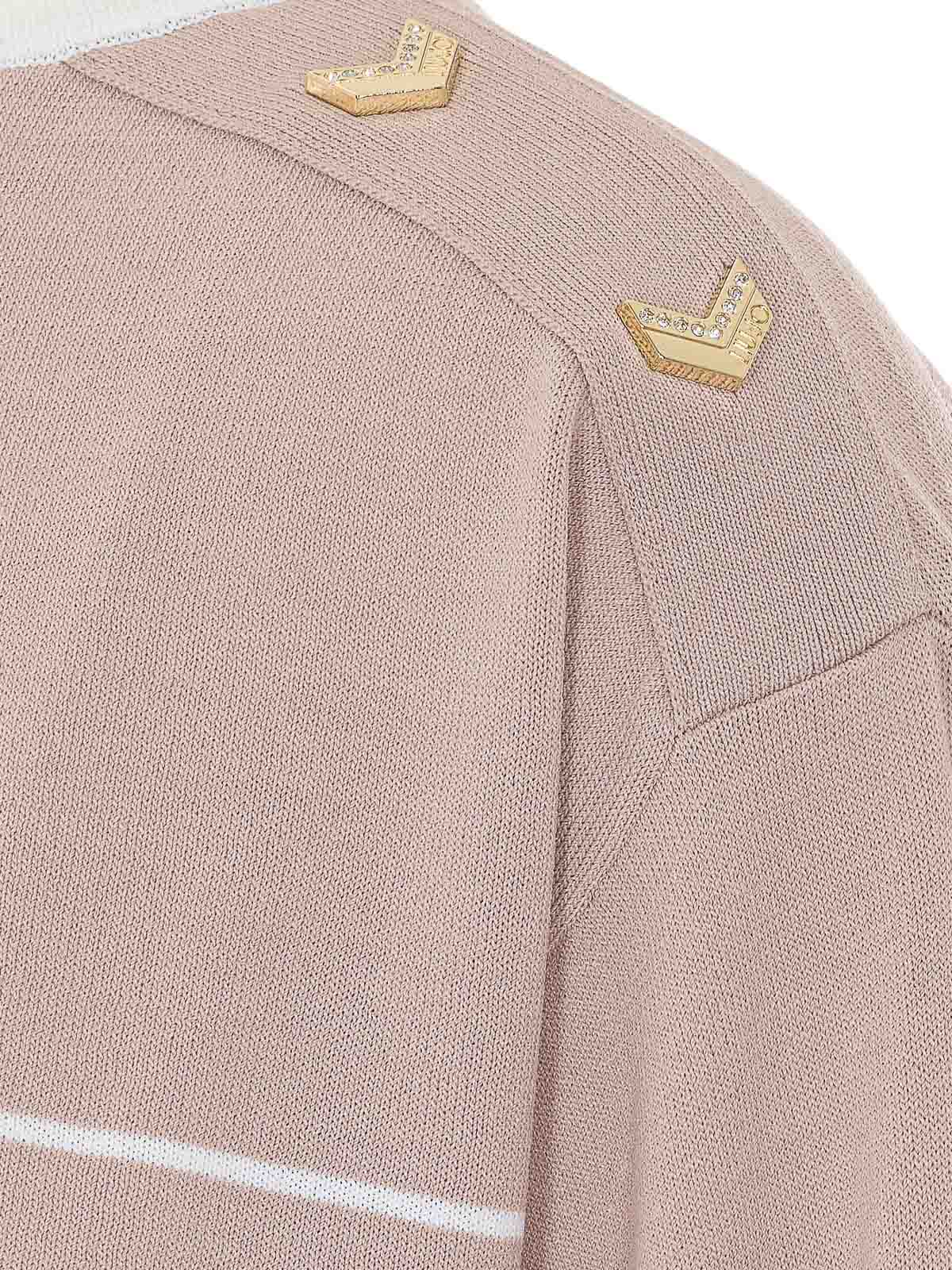 Camiseta Liu jo beige, cuello redondo, manga larga, a rayas, cuello redondo, detalle en el hombro