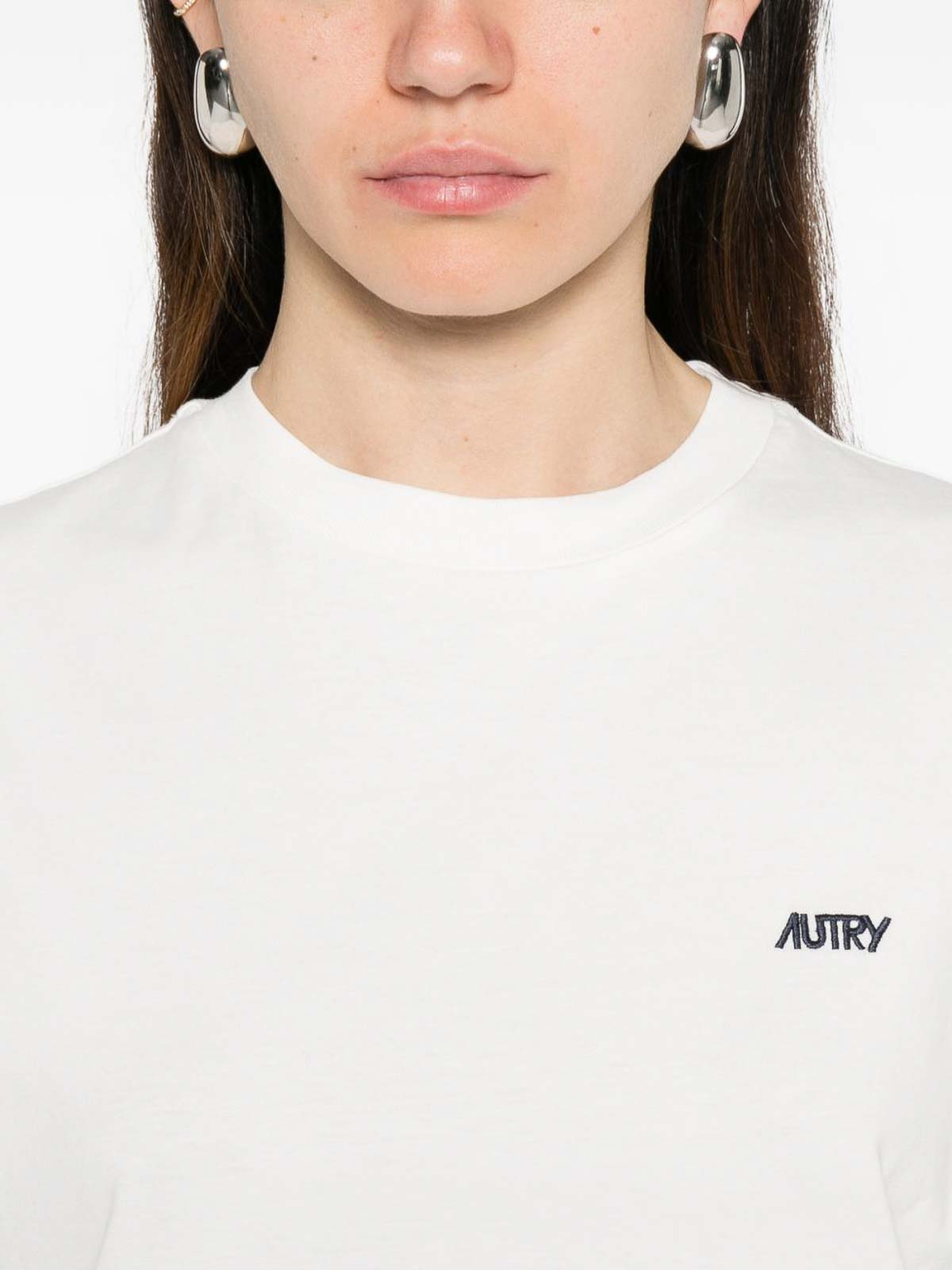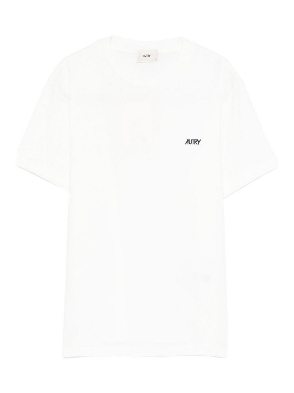 Camiseta blanca de algodón de Autry. Con cuello redondo, mangas cortas y un distintivo detalle de logotipo azul, esta camiseta de diseñador combina comodidad con un estilo deportivo. Perfecta para el uso diario o como capa, añade un toque fresco y moderno a cualquier atuendo.
