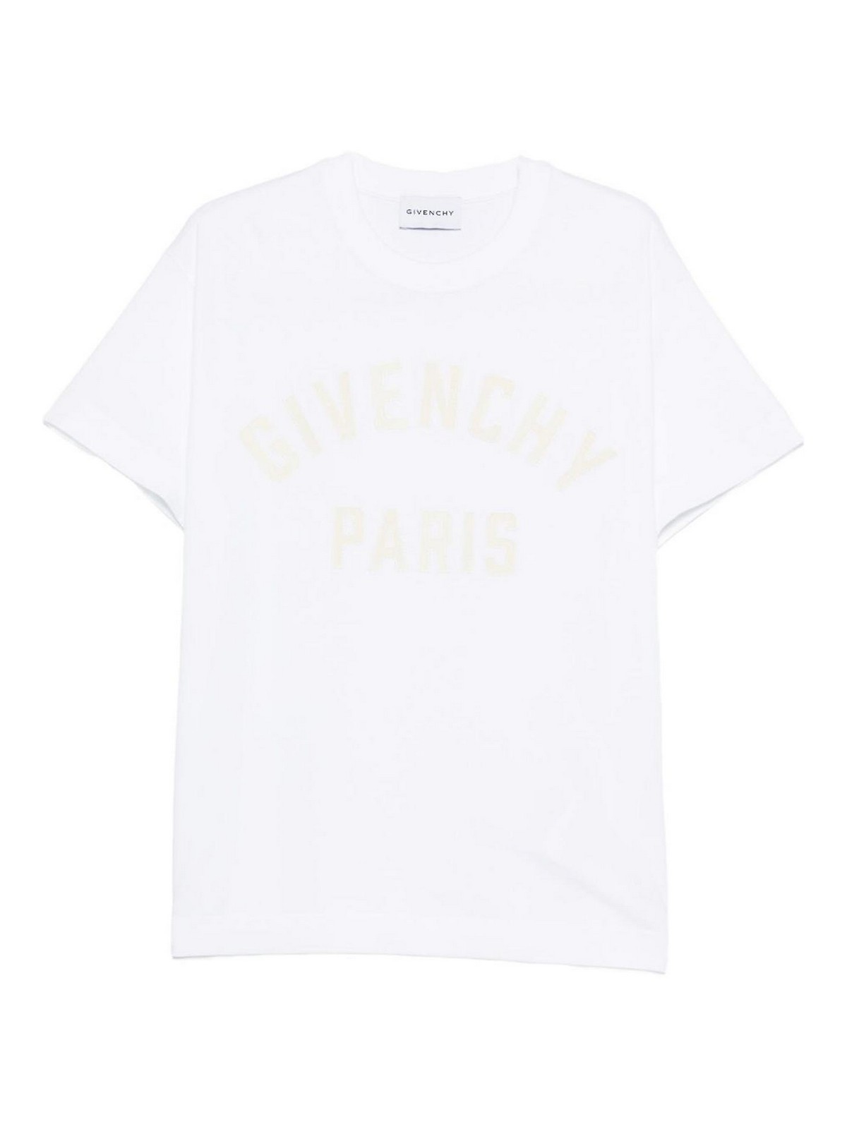 Camiseta de manga corta, cuello redondo, parche de Givenchy Paris con costuras en zigzag bordadas en corte cuadrado