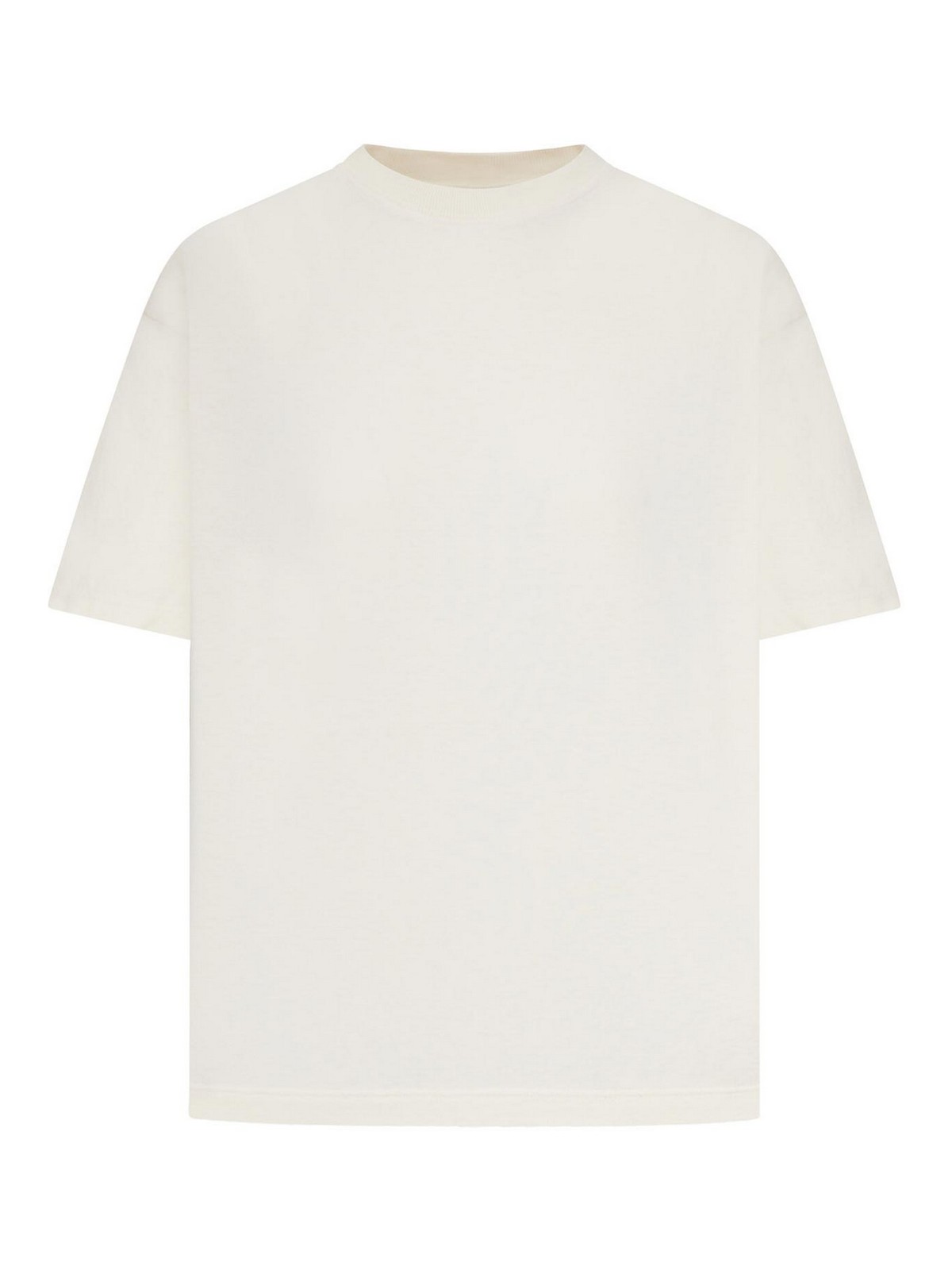 cuello redondo, logotipo dorado invertido en la espalda, doble estrella dorada en la espalda, corte holgado, mangas cortas, acabado desgastado, corte cuadrado, 100% algodón, color: blanco tradicional