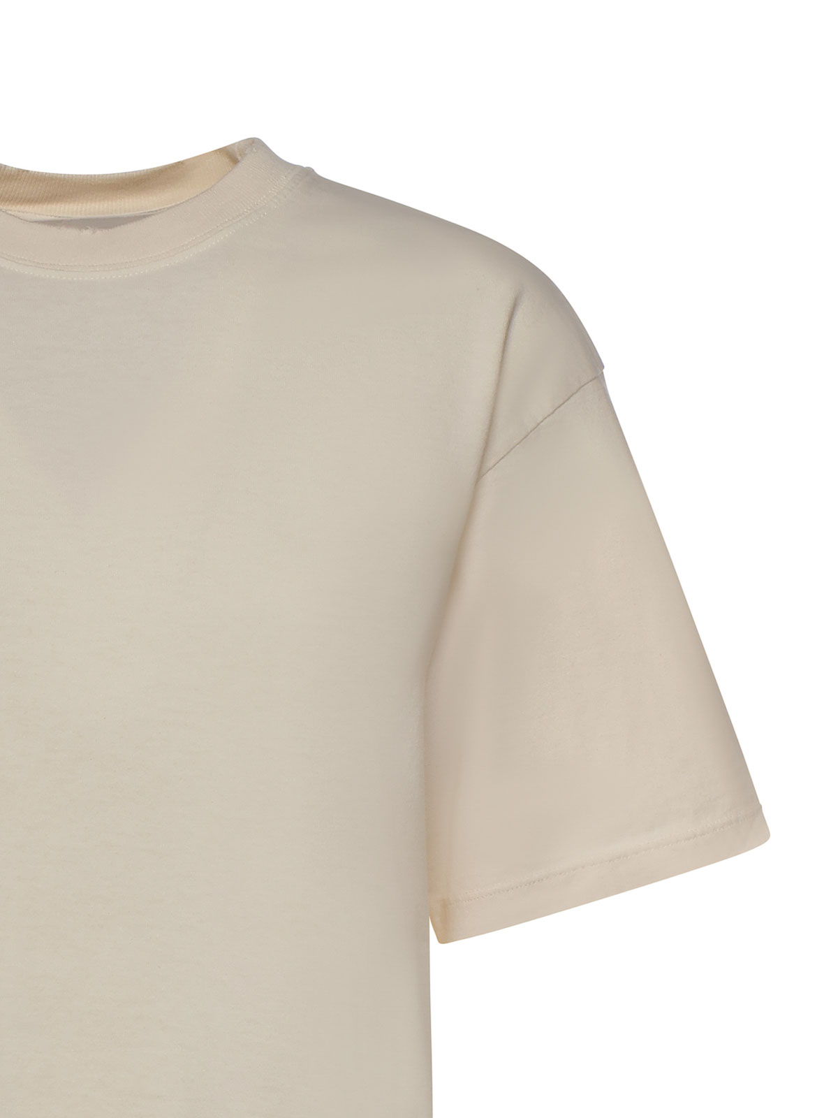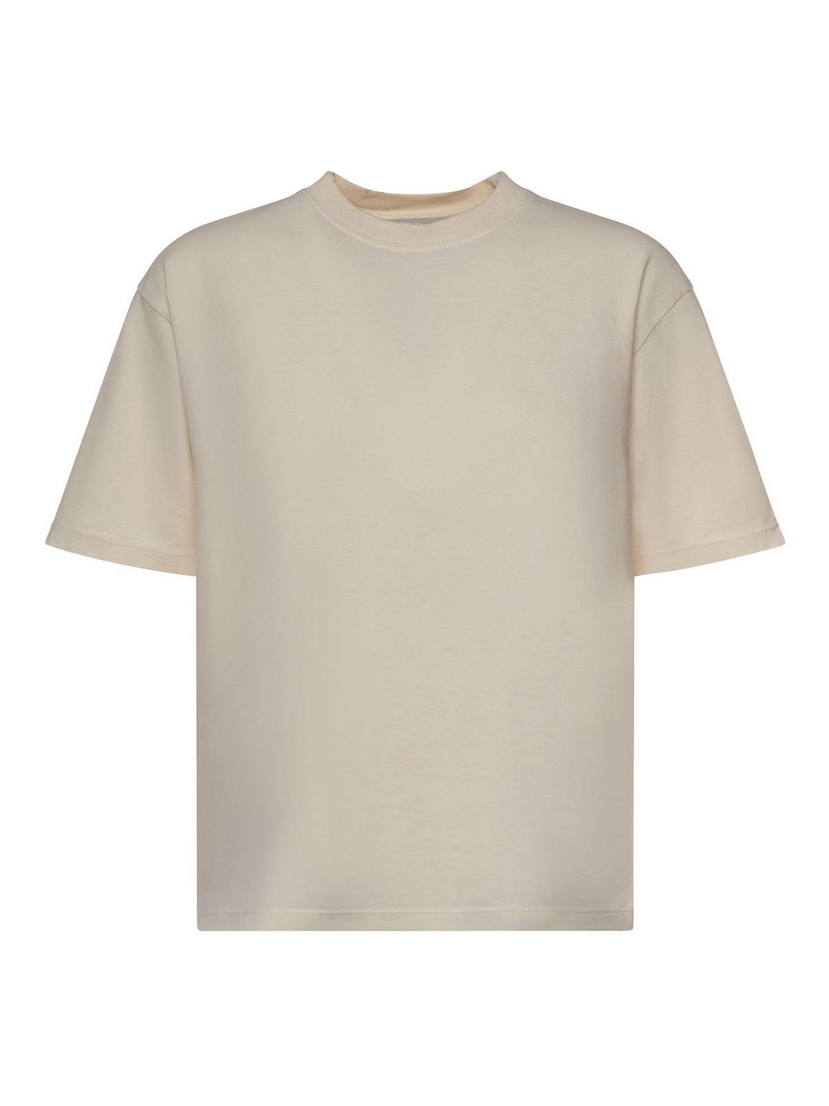 confeccionado en algodón puro, cuello redondo, manga corta, logotipo invertido en la espalda, corte cuadrado, la talla que se muestra es xs, hecha en Italia, color del diseñador: blanco tradicional