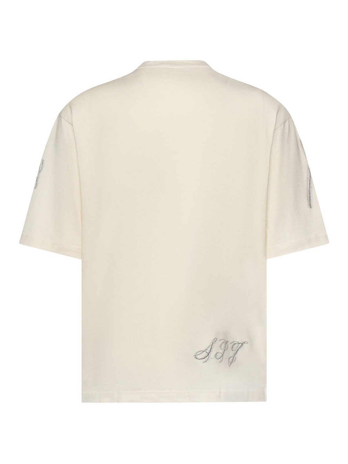 confeccionado en jersey de algodón, cuello redondo, manga corta, corte holgado, la talla que se muestra es la S, color del diseñador: blanco jacquard burro