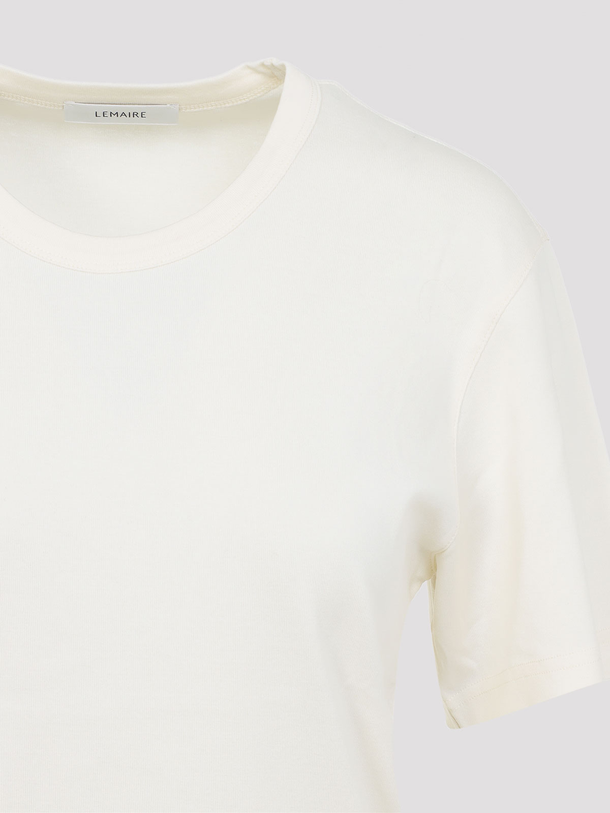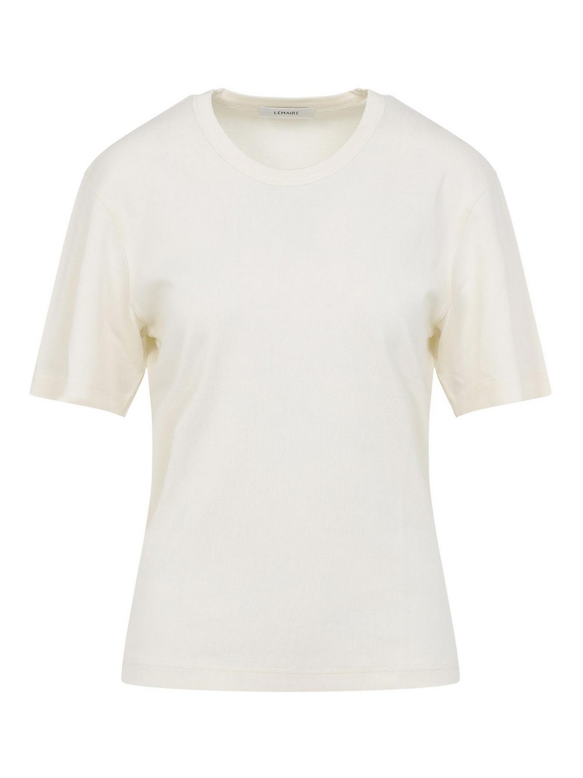 Camiseta acanalada Lemaire de algodón blanco crema claro. Camiseta de algodón blanco crema claro puro, cuello redondo, manga corta, dobladillo recto, costuras tonales.