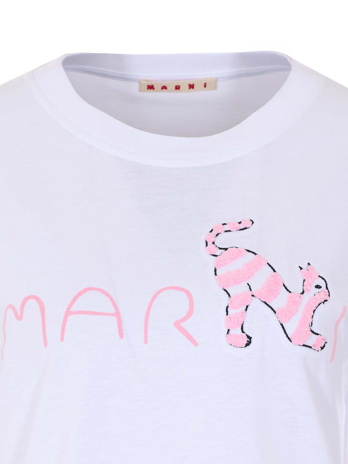 Camiseta blanca Marni, cuello redondo, logo estampado en la parte delantera, detalle bordado