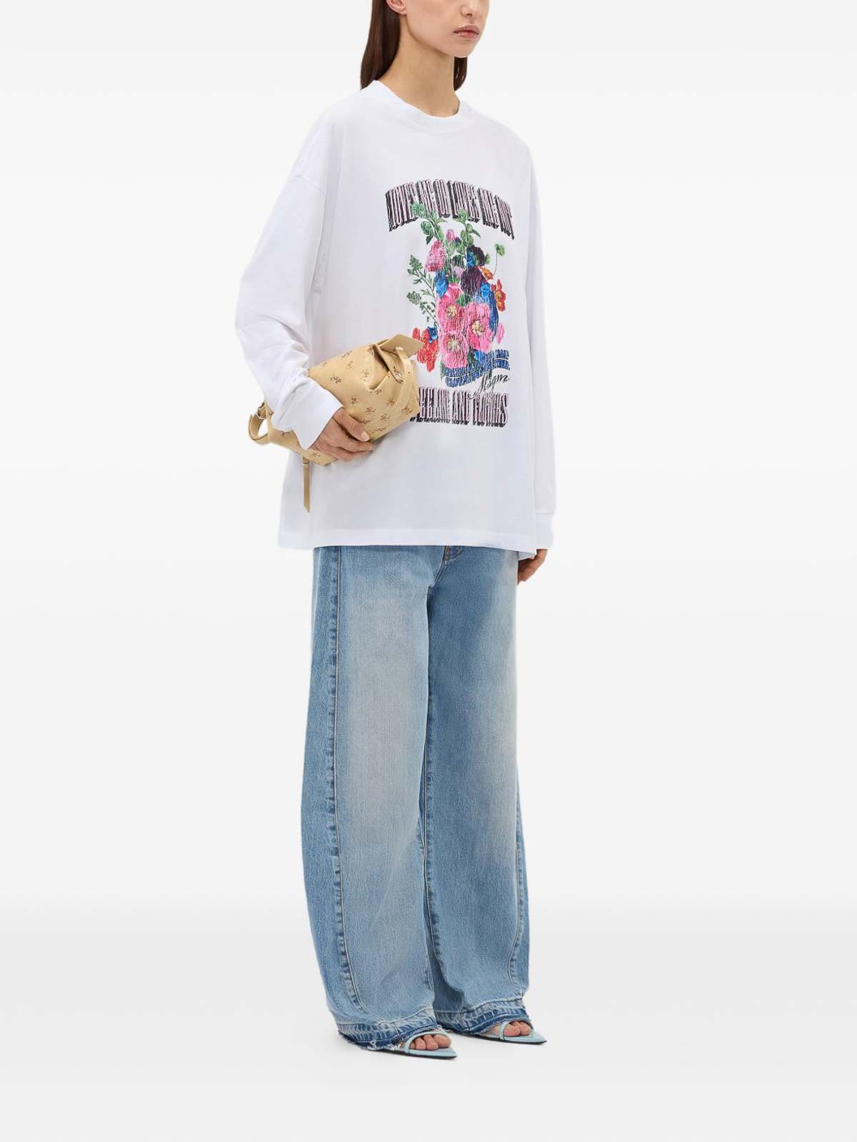Camiseta de manga larga en blanco con estampado de flores de msgm