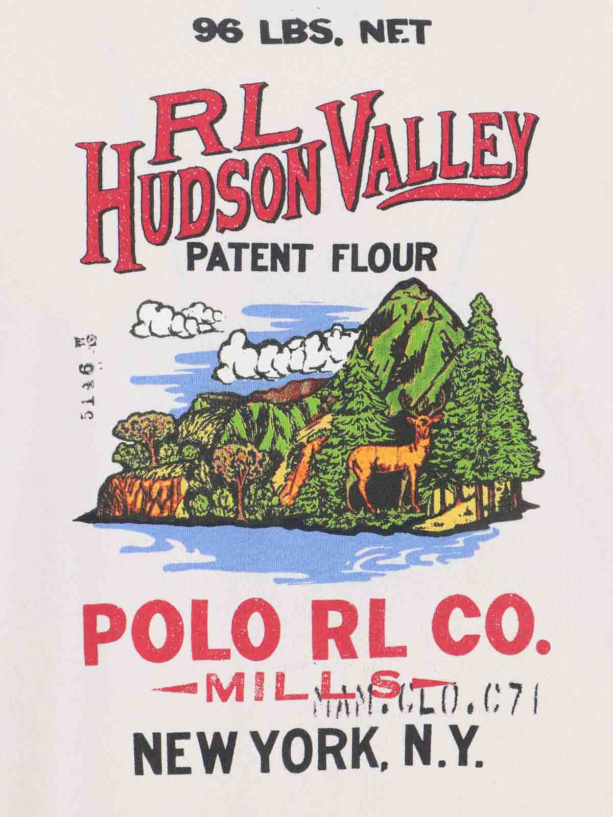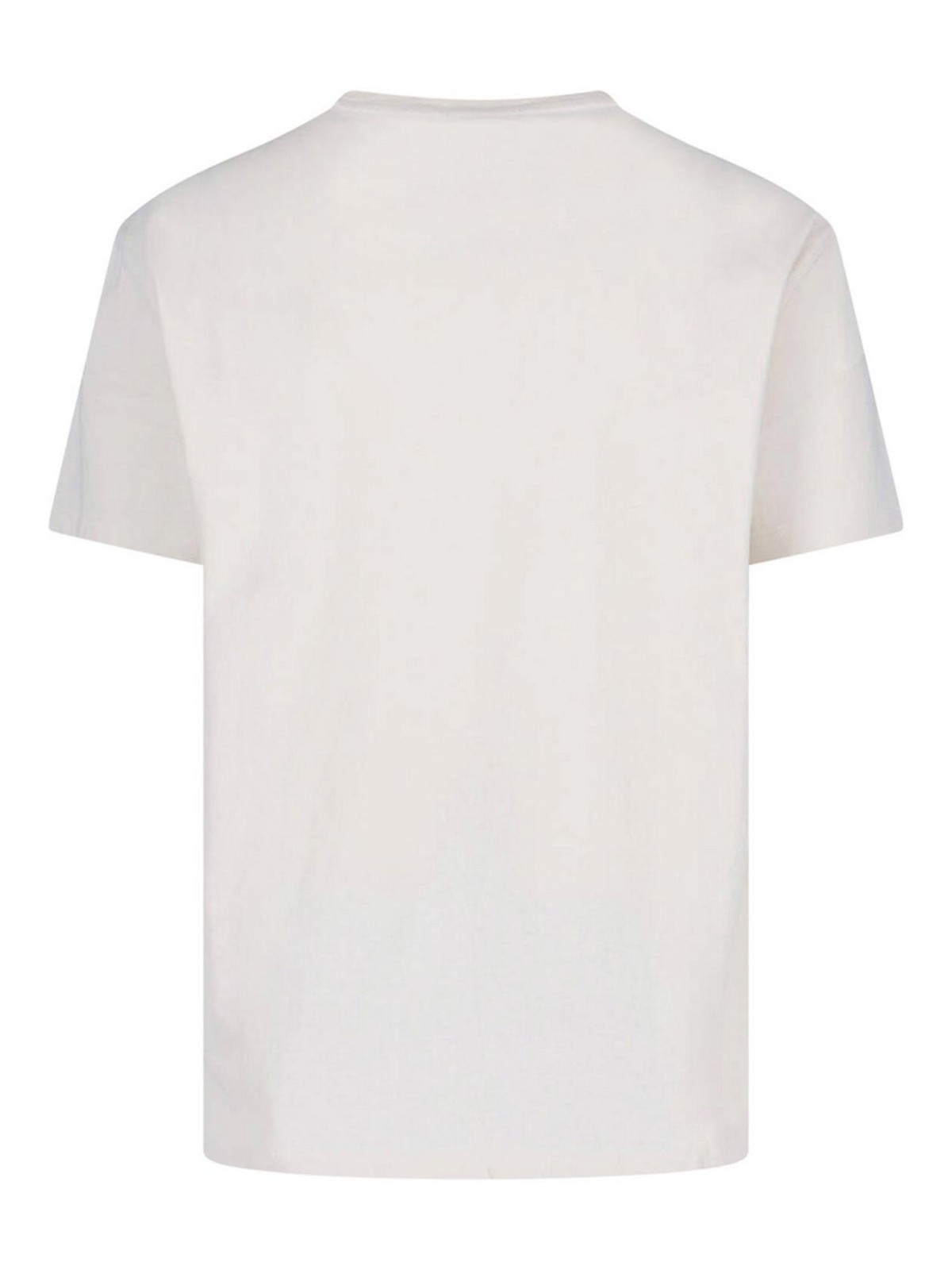 Camiseta Polo Ralph Lauren en algodón blanco, cuello redondo, manga corta, estampado multicolor en la parte delantera, dobladillo recto.