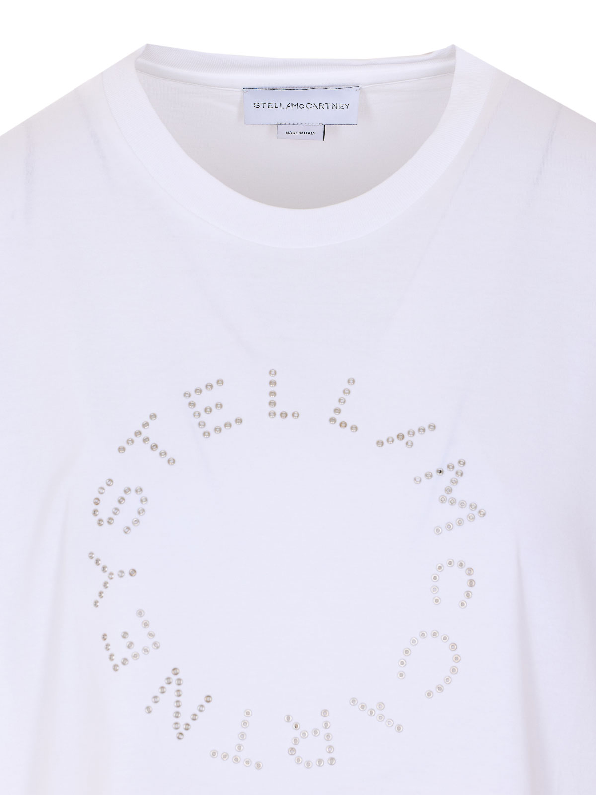 Camiseta blanca de Stella McCartney, cuello redondo, logo en la parte delantera