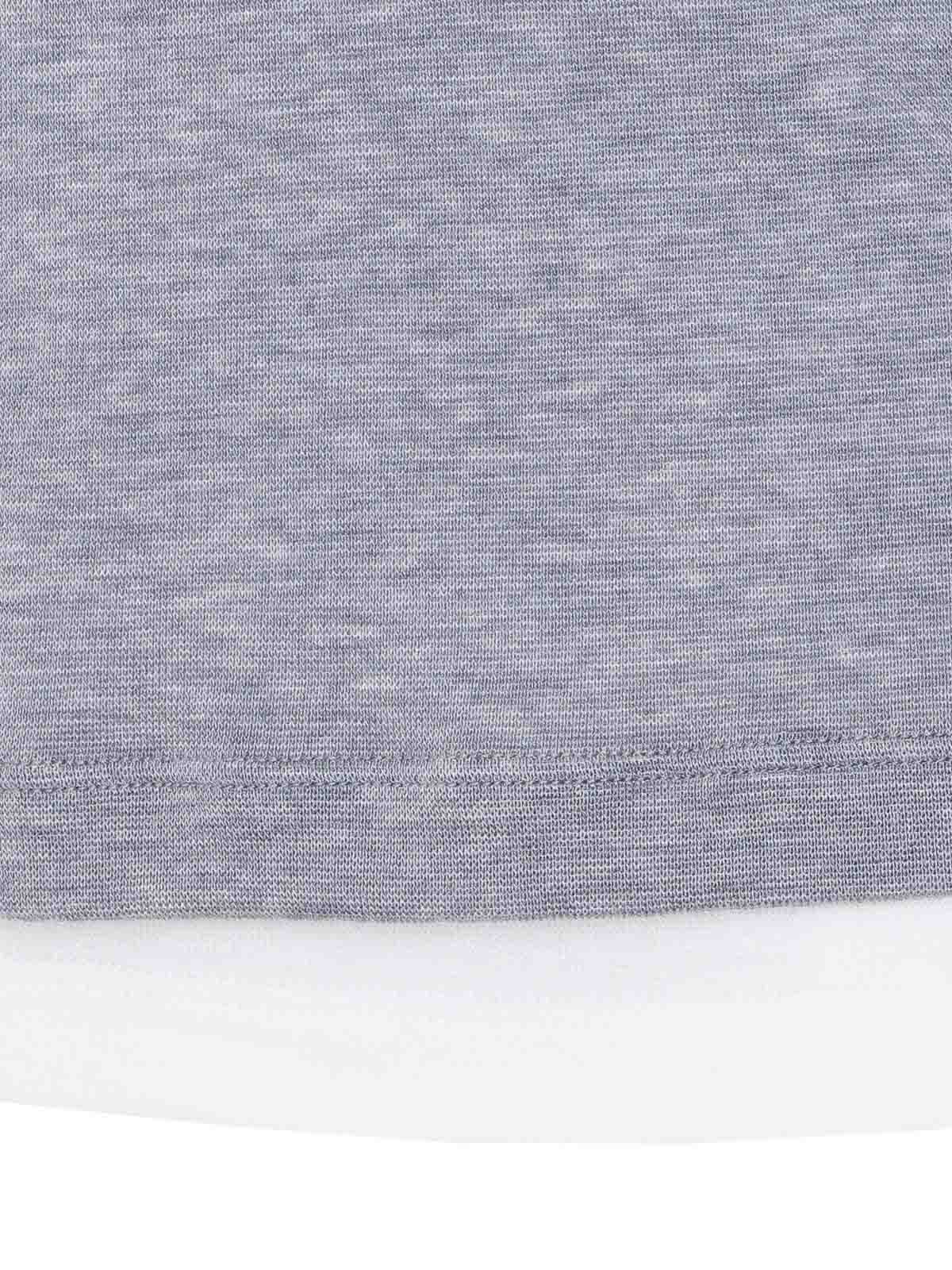 Camiseta henley blanca y gris de Eleh, perfiles en contraste, cuello redondo, manga corta