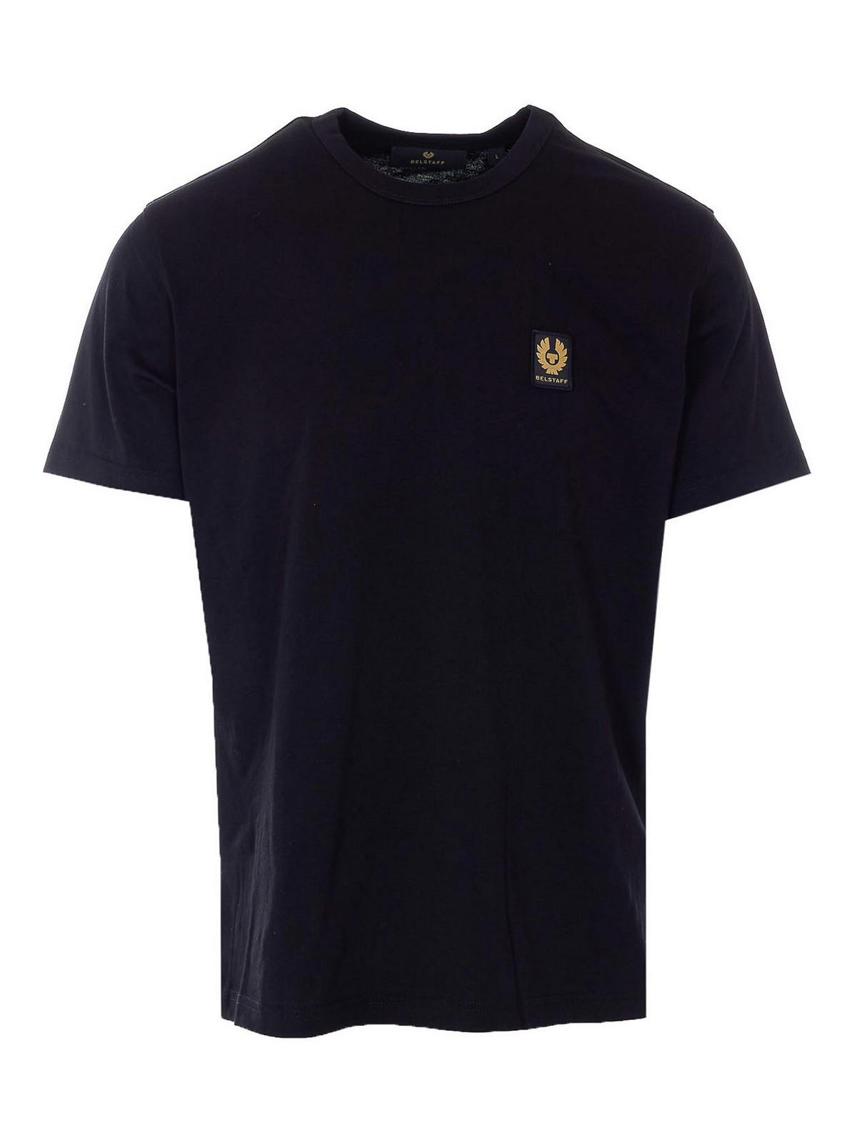 Camiseta negra de Belstaff, cuello redondo, parche con logo en la parte delantera