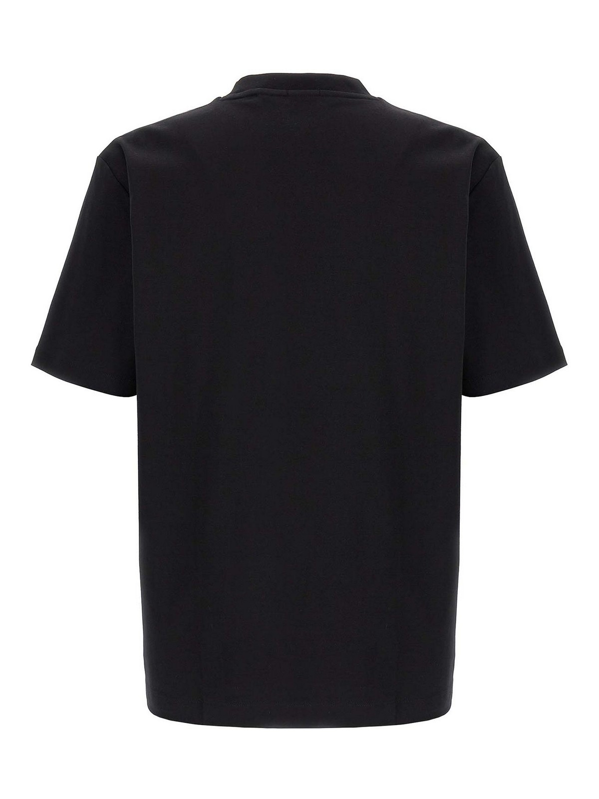 Camiseta de algodón C-Taut, parche de piel tono sobre tono con logotipo metálico en la parte delantera, cuello redondo, mangas cortas, aberturas laterales.
